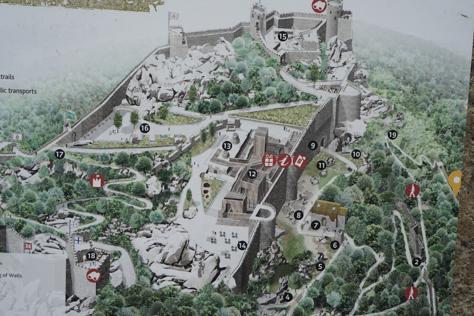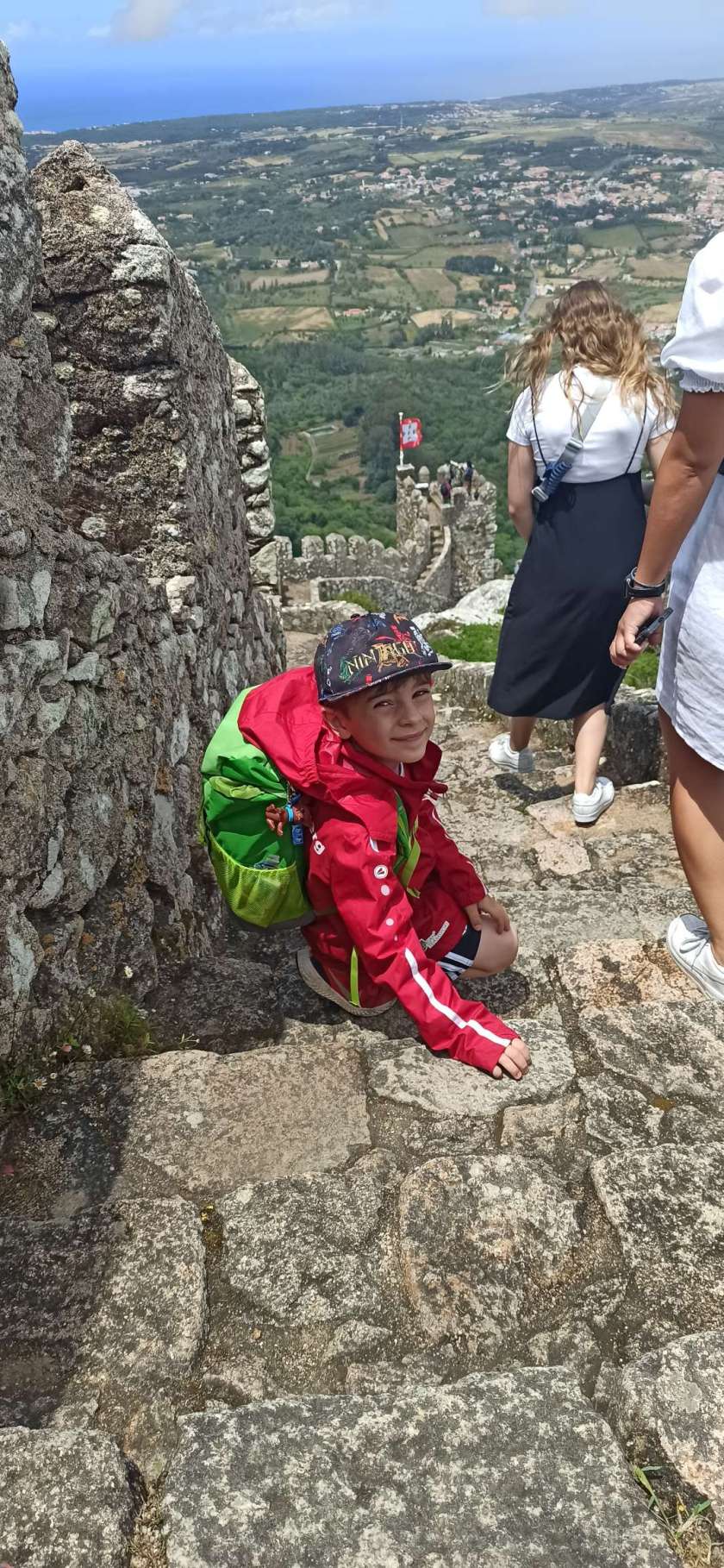 Oben angekommen, gab es das versprochene Picknick…bis der Regen sich wieder einmal zu uns gesellte. Zum Glück hielt der aber nicht lange an und wir sind die Burgmauer hoch und runter und wieder hoch und wieder runter gestiegen. Es war schon beeindruckend.