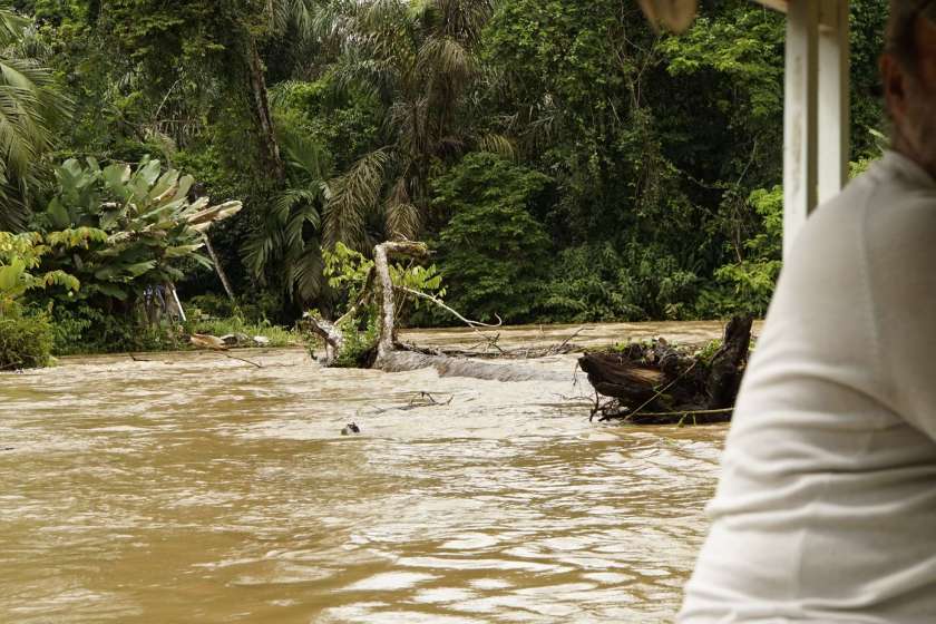 Leute, die Rückfahrt mit dem Boot war so verrückt. Die Hin- und Rückfahrt haben nur eines gemeinsam: wir haben Krokodile gesehen. Das war’s dann aber auch mit den Gemeinsamkeiten. Das Ufer sah ja nicht einmal mehr gleich aus. Nur 3 Tage sind vergangen und der Regen hat es geschafft, dass:
