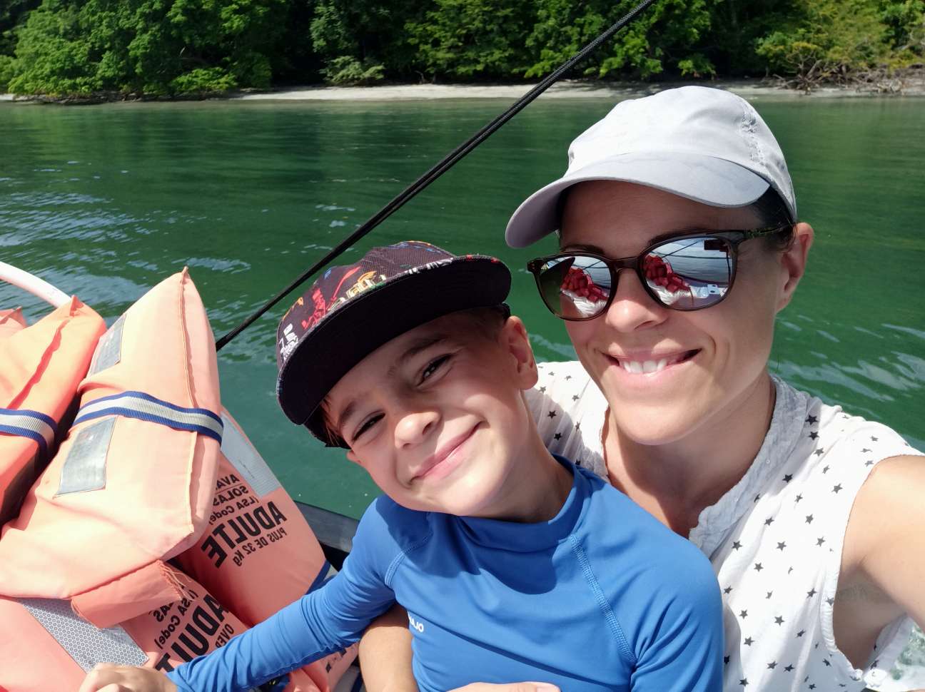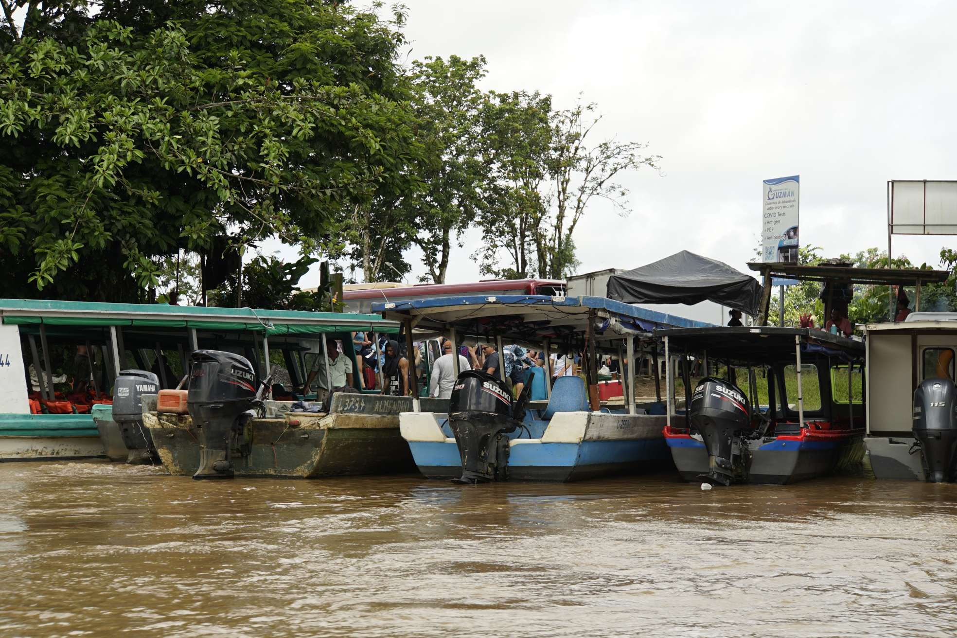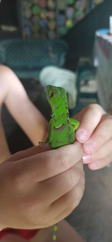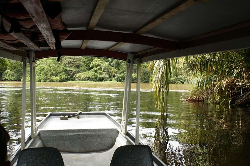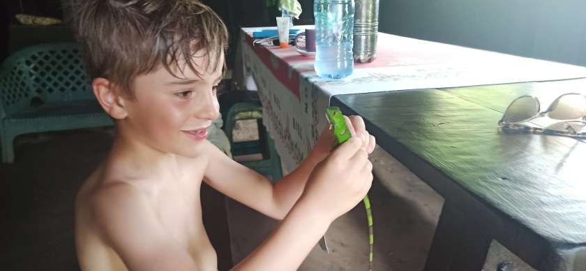 Als wir in Pavona angelangten, waren wir überrascht. Restaurant, Parken und Toilette waren gut organisiert. David, unser Gastgeber war auch schon da. Also sammelten wir unser Zeug zusammen und gingen „an Board“. 1,5 h Fahrt durch den Regenwald lagen nun vor uns. Der absolute Hammer: schon nach 5 Minuten haben wir ein Baby Krokodil (das so gar nicht babz aussah!) gesichtet. Check ✔️ ein Wunsch von Ben ist schon einmal erfüllt. Die Natur ist so wunderschön.