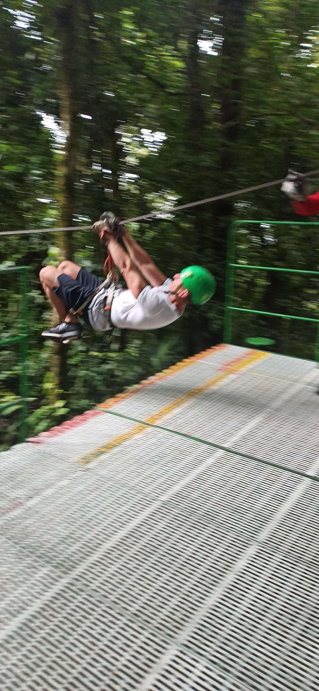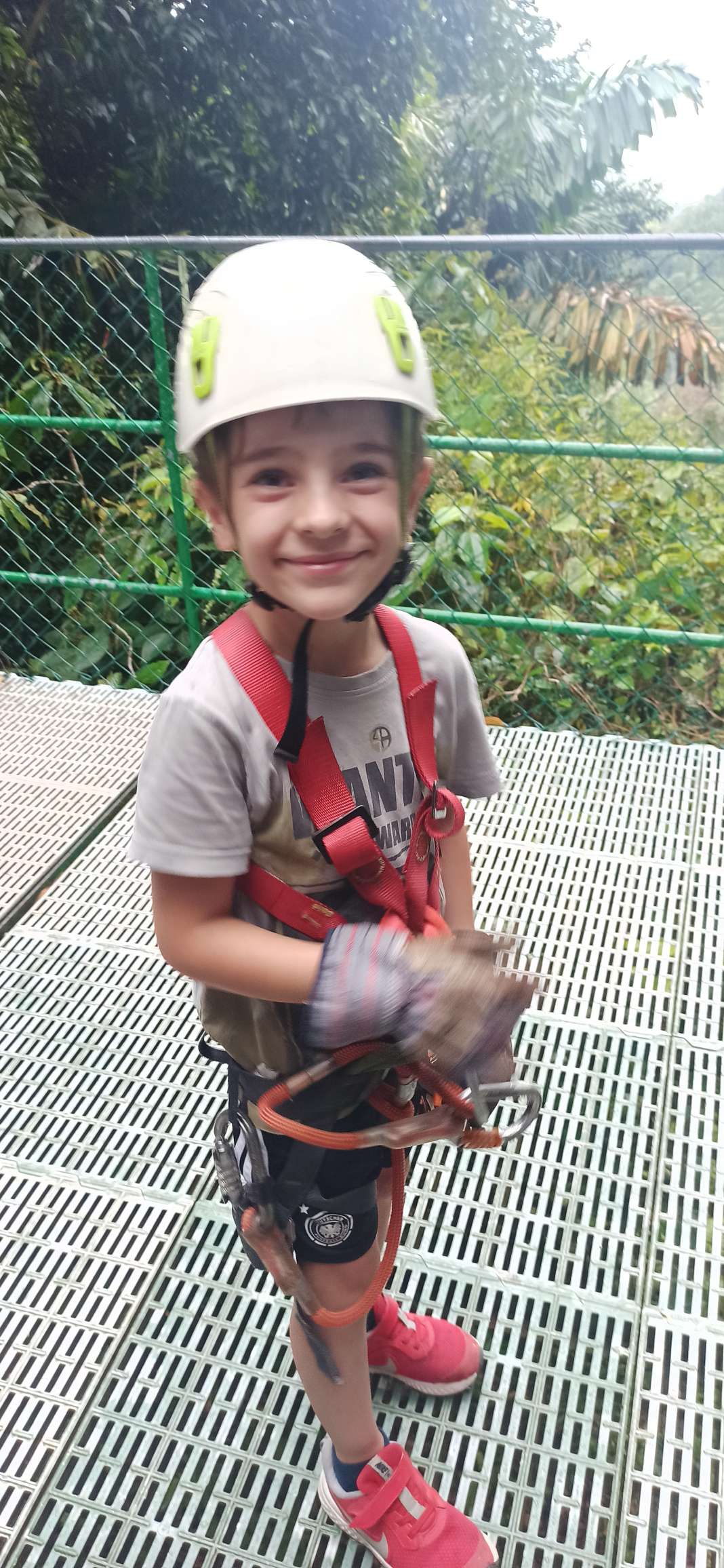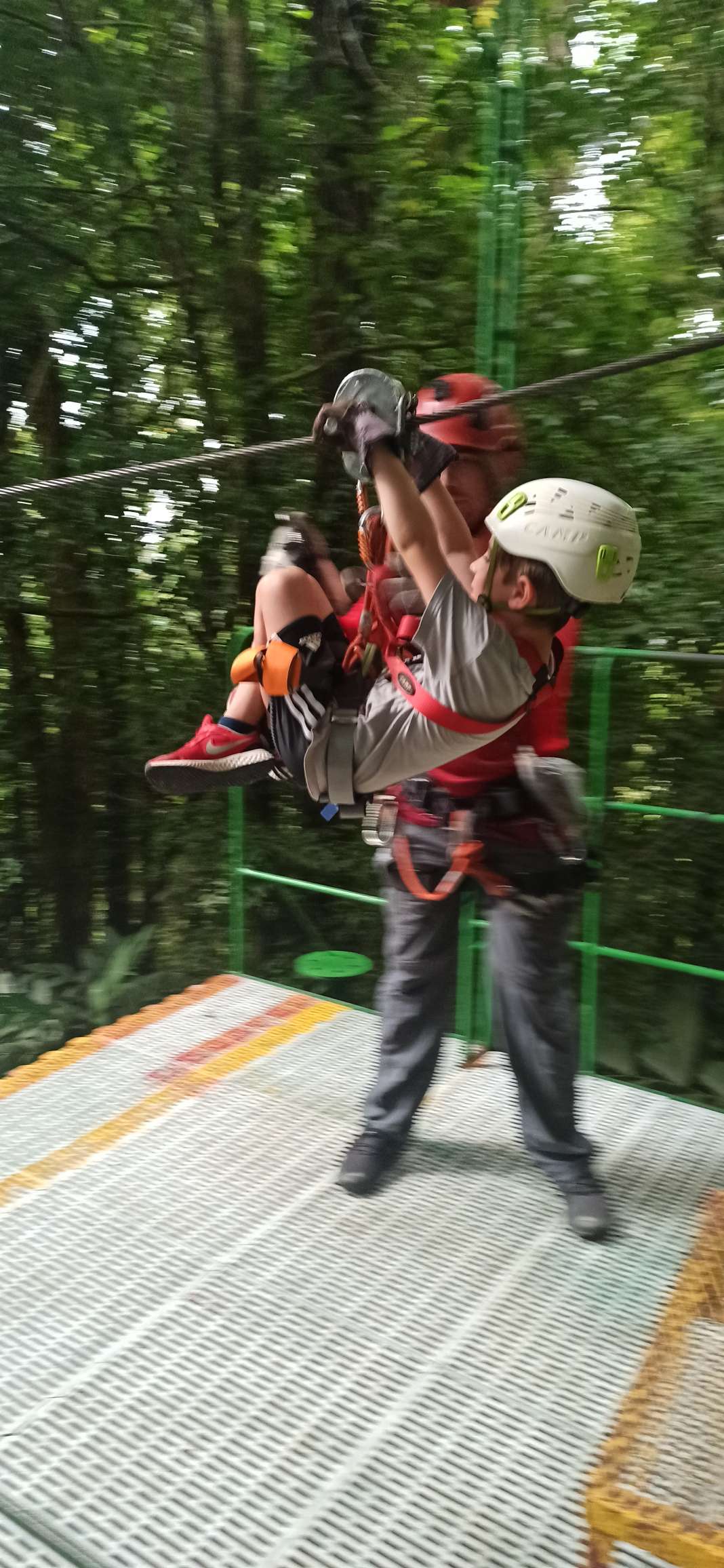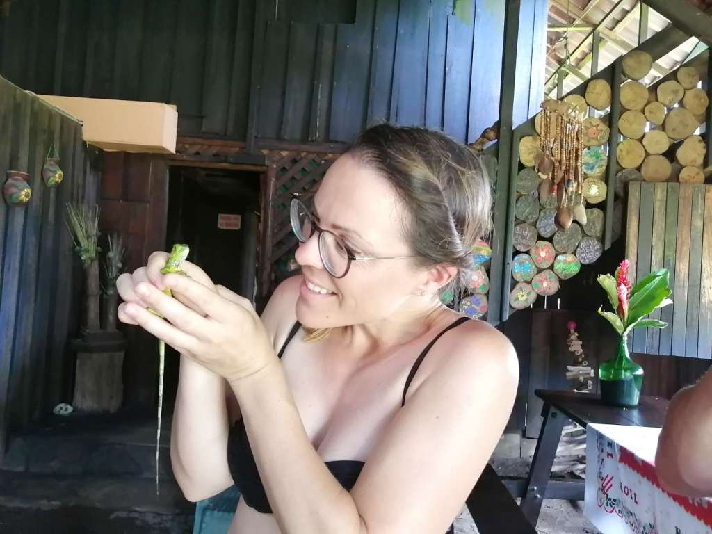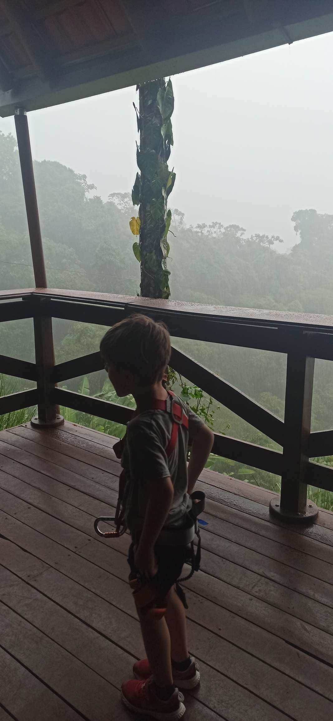 Doch. Gesagt, getan. Ben war anfangs sehr skeptisch. Doch er fand es MEGAAAAAA. Die erste und letzte Line ist er sogar allein gefahren. Er war sehr stolz auf sich und hatte mächtig Spaß. Wir auch. Bis es zu regnen begann. Das war dann mittelmäßig cool. Tatsächlich tut Regen bei ca. 45km/h echt weh…haha. Nach der 5. Line mussten wir (zum Glück überdacht) pausieren. 40 Minuten. Langweilig war es kaum, denn zu Gesicht bekamen wir eine kleine, aber außerordentlich giftige Schlange und ein krasses Gewitter. Regenwald war Programm. Der Regen ist noch nicht einmal so heftig wie in der Regenhochsaison, aber schon jetzt sehr beeindruckend. Man kann sich schwer vorstellen, wie so viel Wasser in so kurzer Zeit vom Himmel regnen kann. Ich weiß nicht, ob ich für 250€ noch einmal Ziplining machen würde, aber es war definitiv ein unvergessliches Erlebnis, bei welchem wir alle richtig Spaß hatten! Gedauert hat es ca. 2h.
