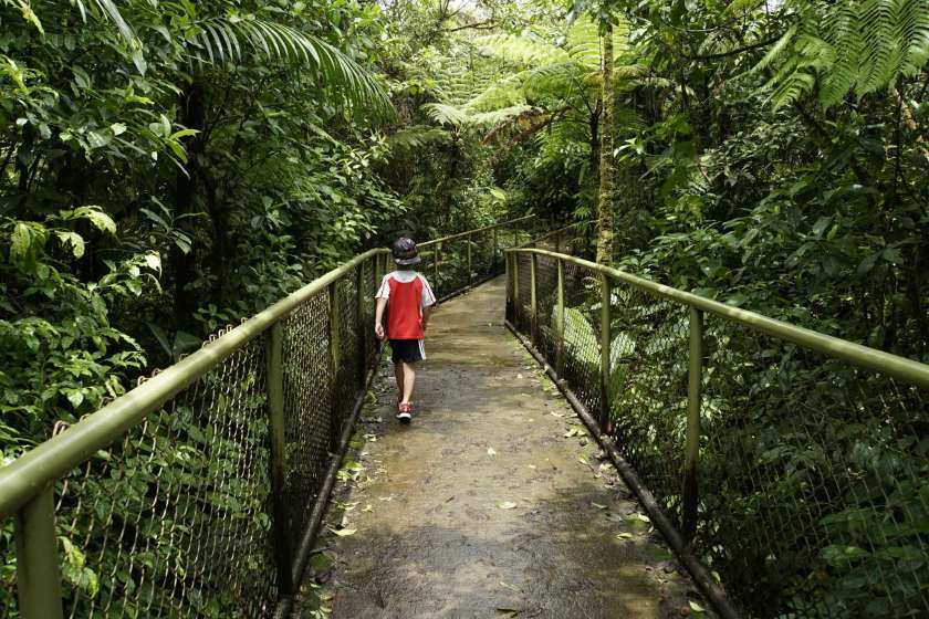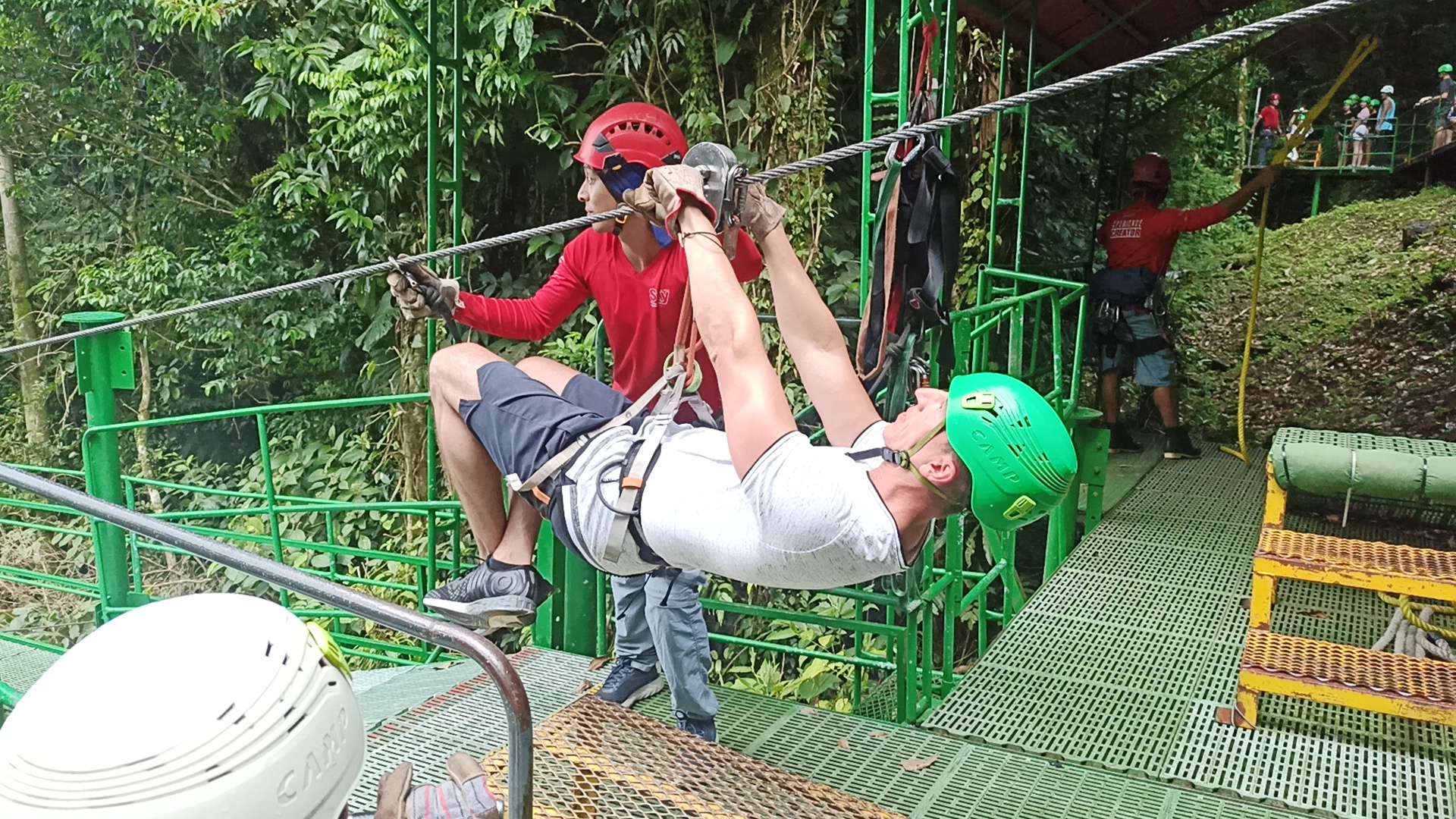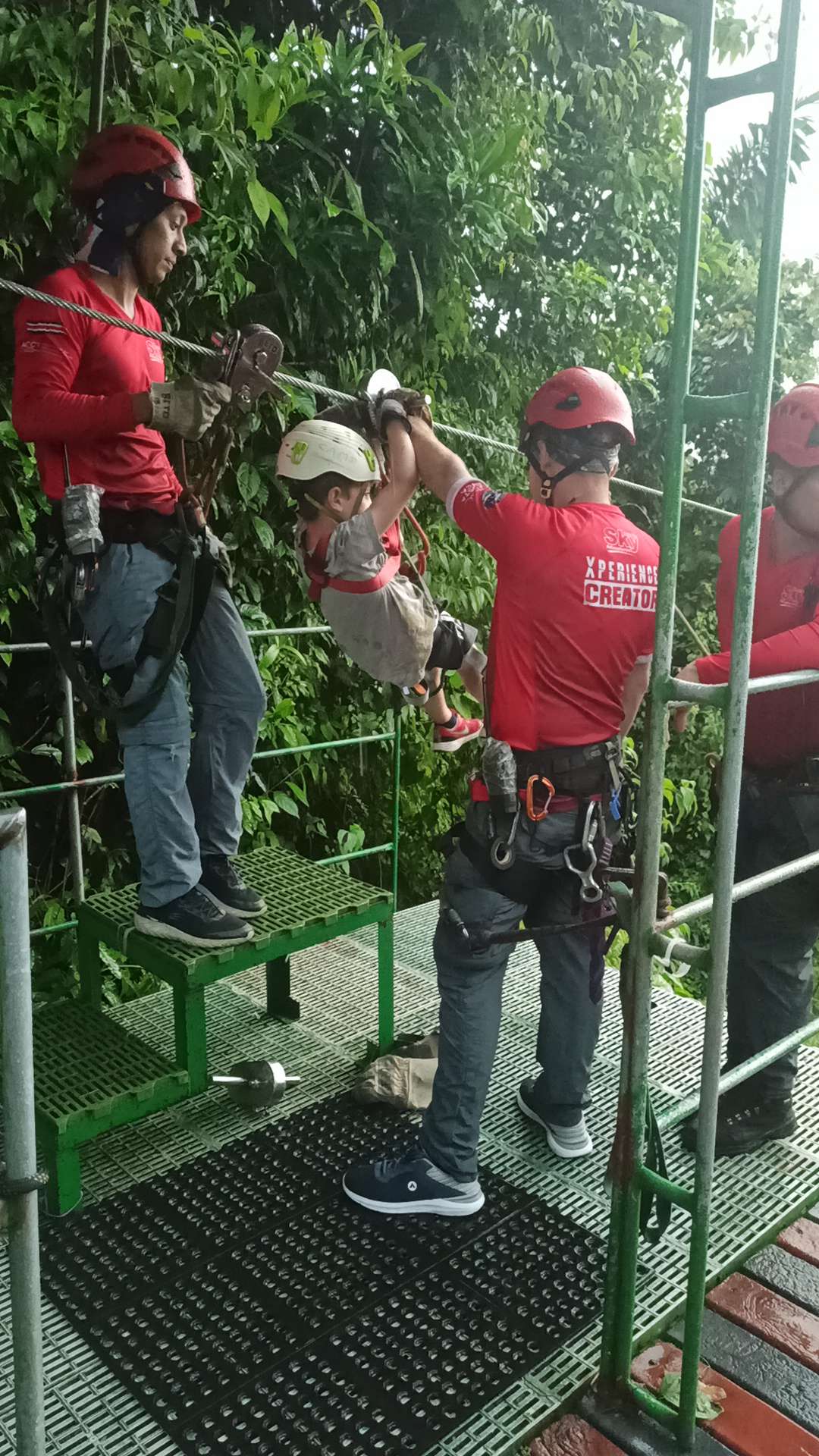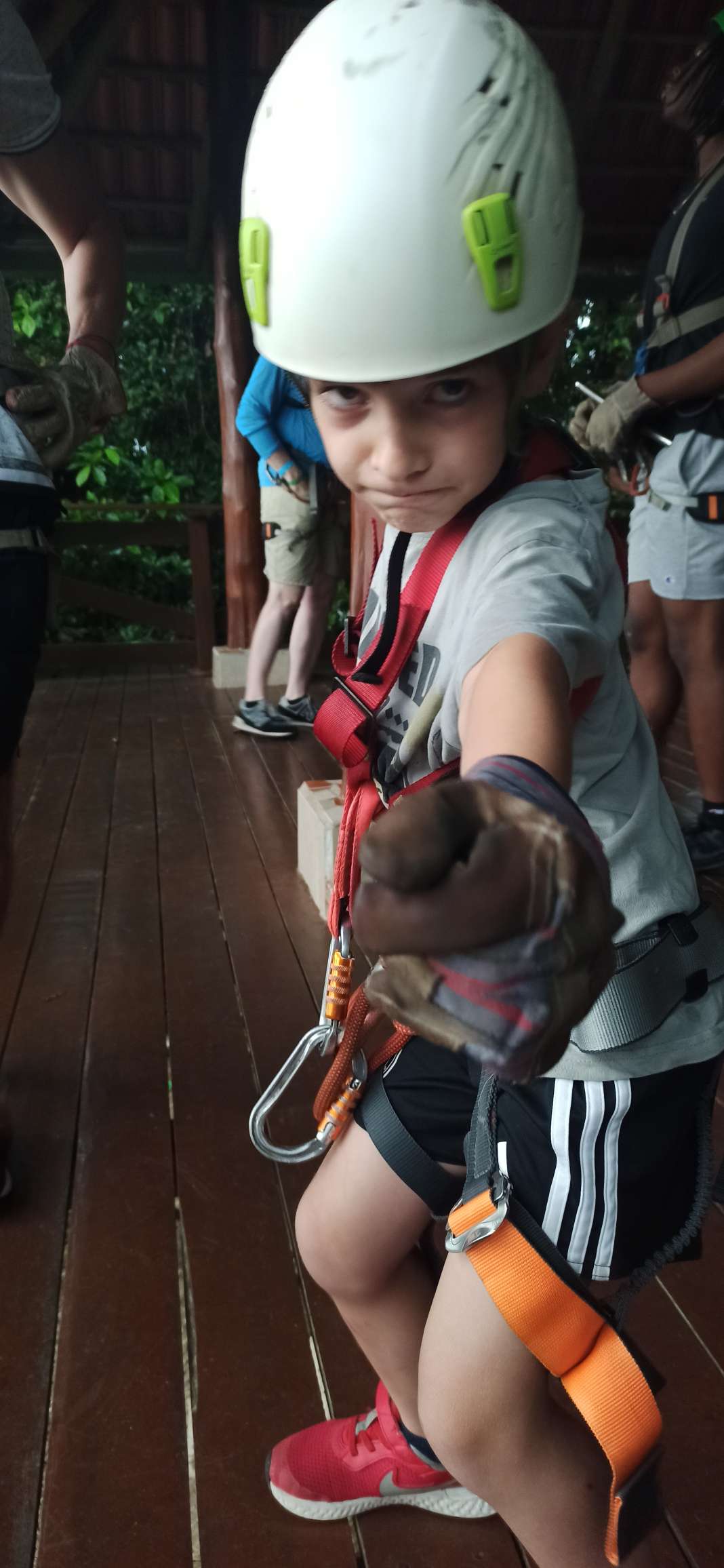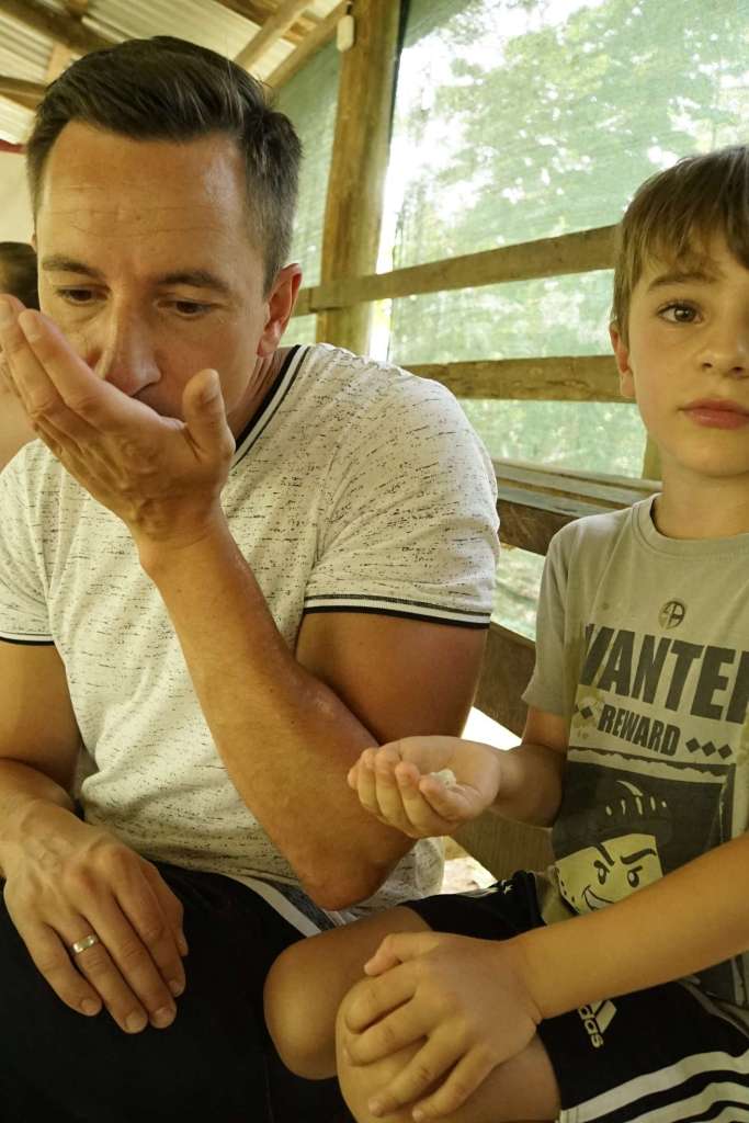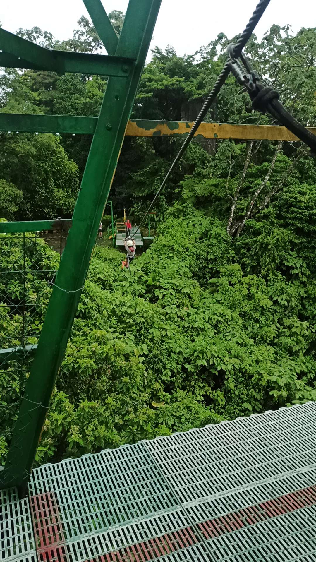 Doch. Gesagt, getan. Ben war anfangs sehr skeptisch. Doch er fand es MEGAAAAAA. Die erste und letzte Line ist er sogar allein gefahren. Er war sehr stolz auf sich und hatte mächtig Spaß. Wir auch. Bis es zu regnen begann. Das war dann mittelmäßig cool. Tatsächlich tut Regen bei ca. 45km/h echt weh…haha. Nach der 5. Line mussten wir (zum Glück überdacht) pausieren. 40 Minuten. Langweilig war es kaum, denn zu Gesicht bekamen wir eine kleine, aber außerordentlich giftige Schlange und ein krasses Gewitter. Regenwald war Programm. Der Regen ist noch nicht einmal so heftig wie in der Regenhochsaison, aber schon jetzt sehr beeindruckend. Man kann sich schwer vorstellen, wie so viel Wasser in so kurzer Zeit vom Himmel regnen kann. Ich weiß nicht, ob ich für 250€ noch einmal Ziplining machen würde, aber es war definitiv ein unvergessliches Erlebnis, bei welchem wir alle richtig Spaß hatten! Gedauert hat es ca. 2h.