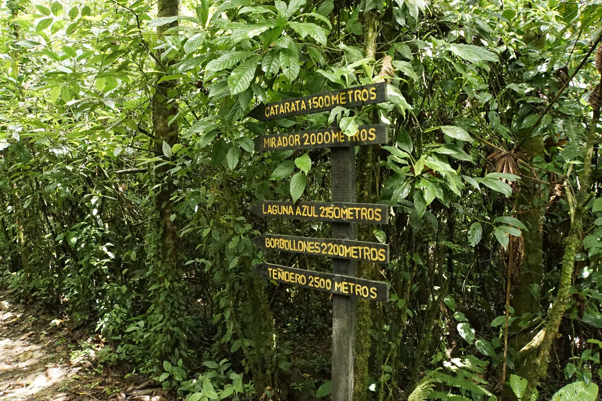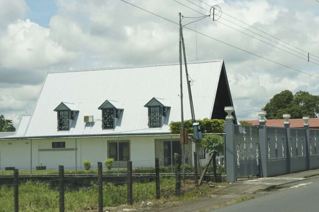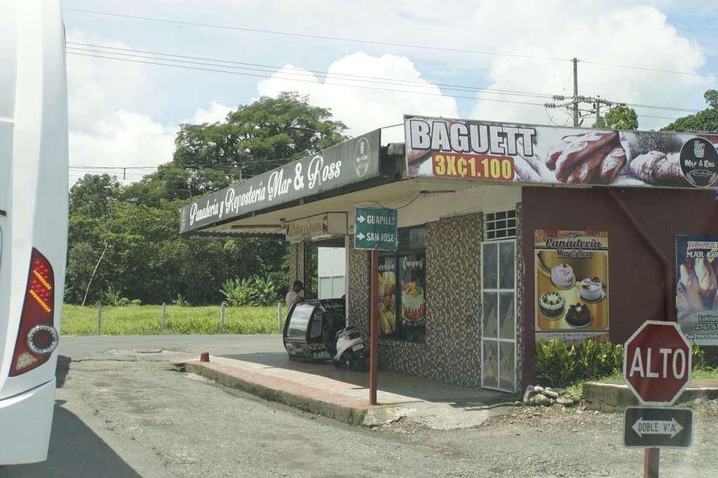 Eine Stunde später wussten wir auch warum. Die Gründe wechselten sich ab. Entweder die Straße hätte 1m² (!!!!!) große Schlaglöcher, der Nebel war so dicht, dass 50m Sicht Luxus wären. Oder aber vor uns fuhr ein LKW mit 20-30 km/h. Wahnsinn. Und trotzdem empfanden wir den Verkehr (im Vergleich zu Asien) sehr gesittet und geordnet. Tatsächlich lag auch ein LKW im Straßengraben. Wir fuhren durch den Regenwald (wow war das ein Sound!!), durch attraktive kleine Orte, durch merkwürdige und zwielichtige Orte und an kilometerlangen Bananenplantagen vorbei. Dole und Chiquita scheinen hier „Zuhause“ zu sein. Wahnsinn, wir sind sicher 10 Minuten lang an der Chiquita Plantage vorbei gefahren. Es nahm kein Ende. Und Dole war auch echt groß. Cool waren auch die Bananenschranken.