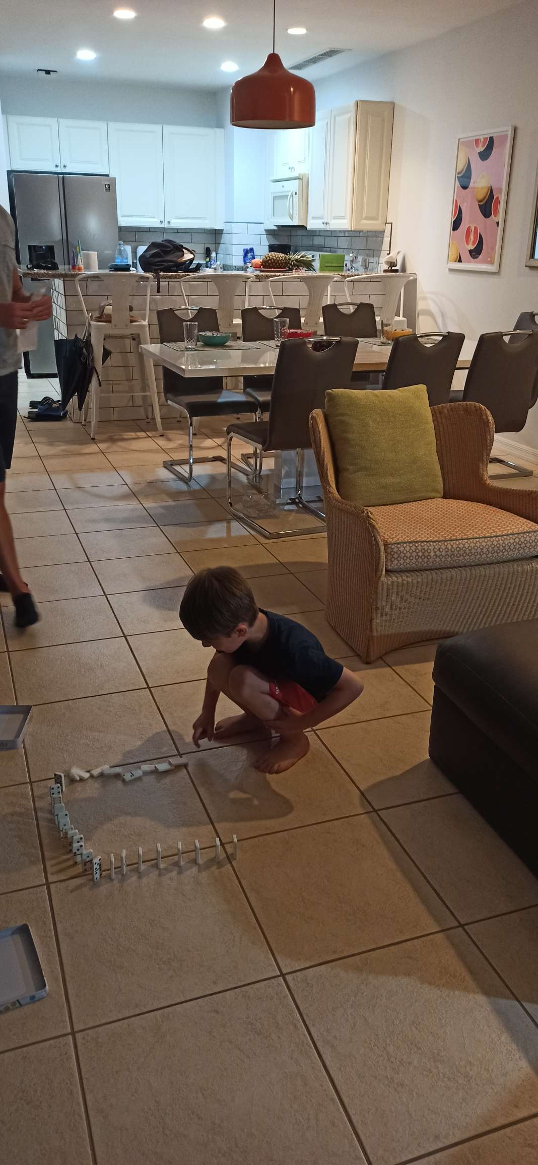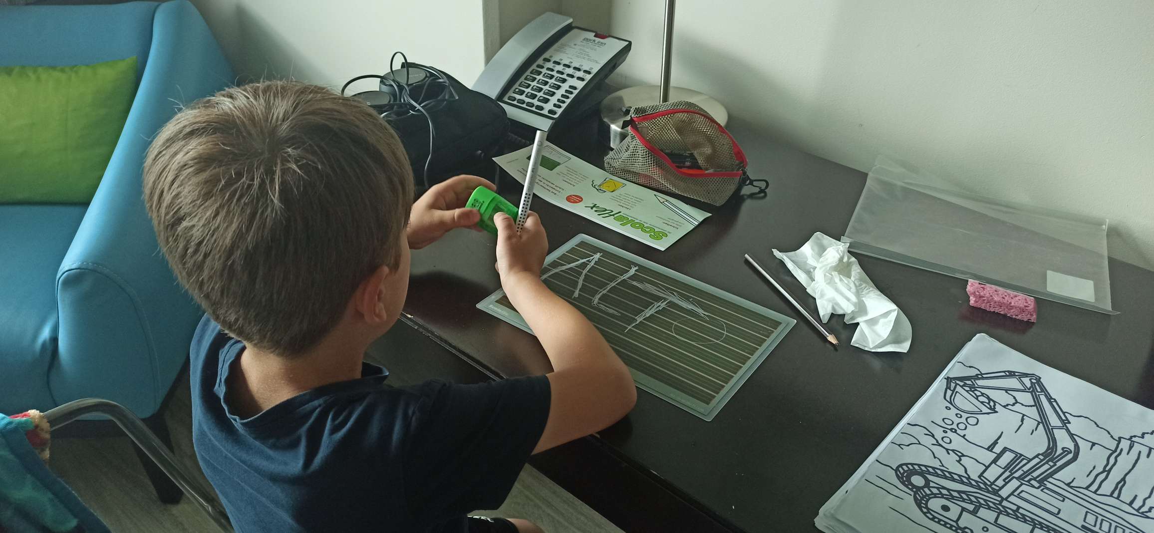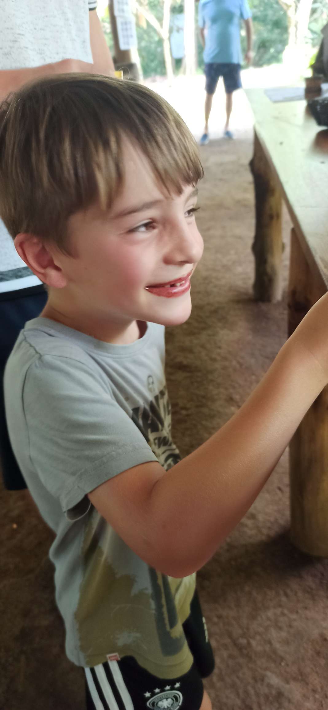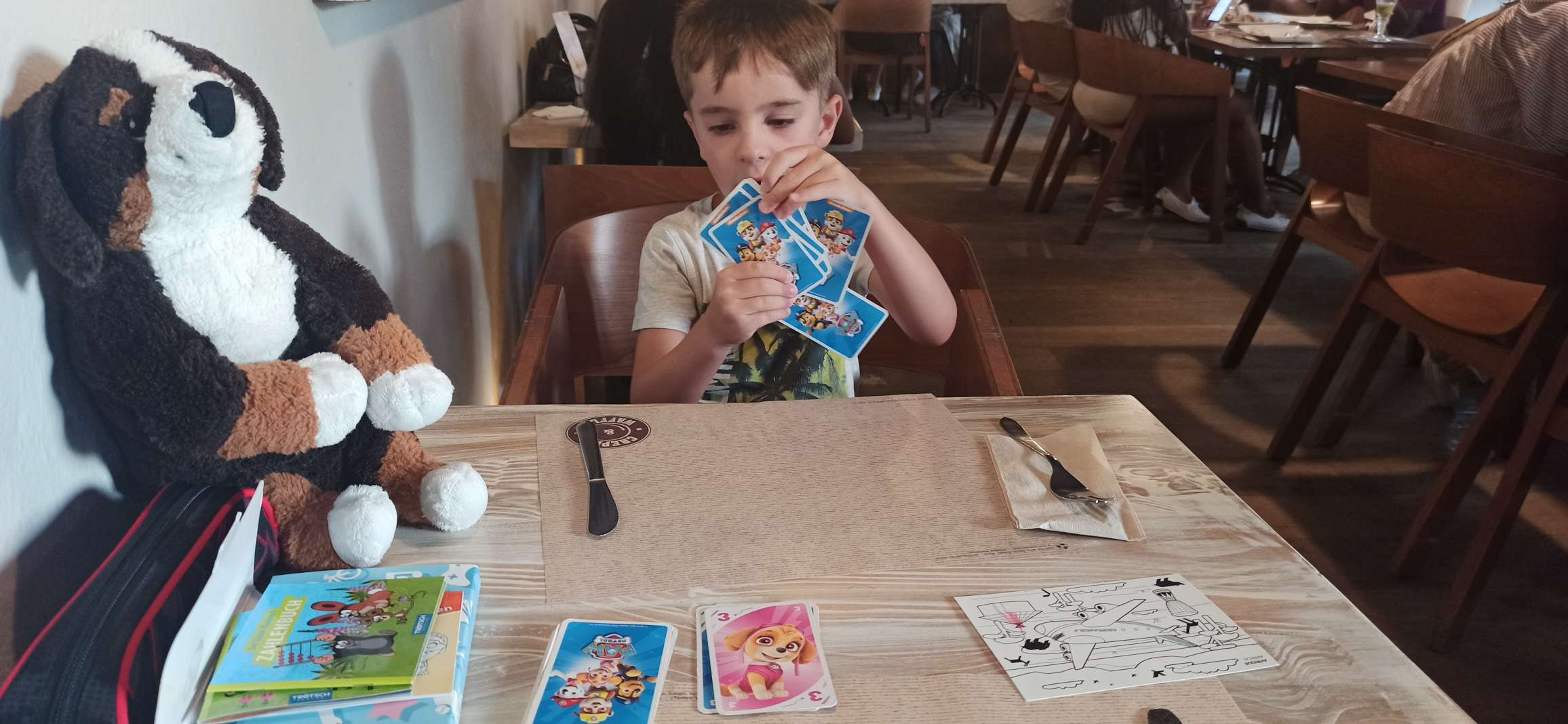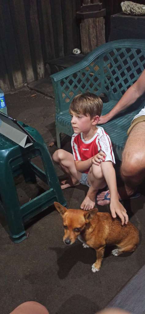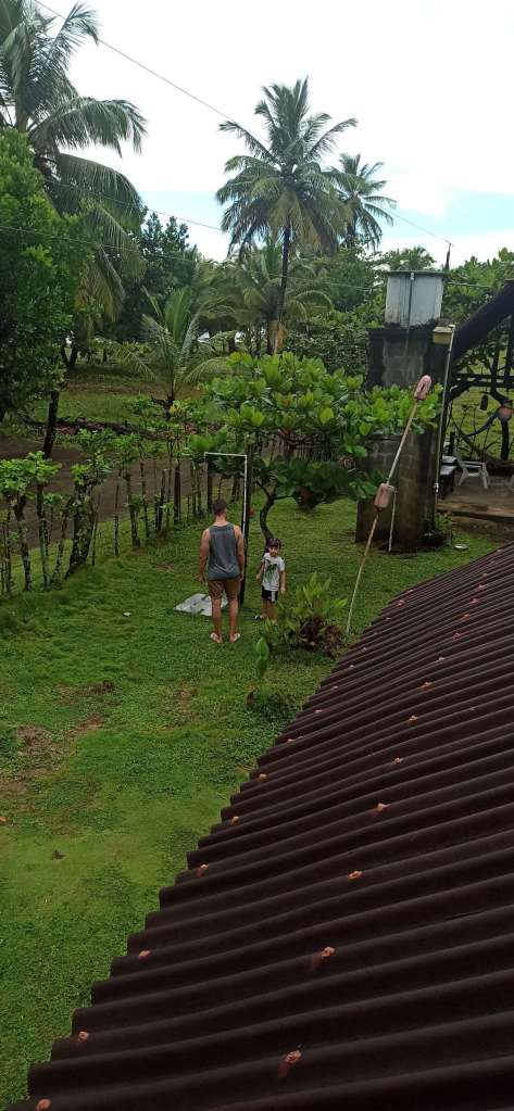 Bis 16 Uhr kamen wir in den Genuss, die Idylle unter freiem Himmel zu genießen. Auch haben wir von Catharins ältesten Sohn (7) „Damian“ Besuch bekommen. Zwar haben Ben und er sich nicht unterhalten können, doch google translate hat einiges ermöglicht. So haben sie zuerst gemeinsam Fußball gespielt und später nebeneinander her ausgemalt. Dann setzte der Regen ein. Doch dieses Mal hat uns das gar nicht gestört. Vielmehr haben wir uns draußen in das Patio gesetzt und das Plätschern genossen.