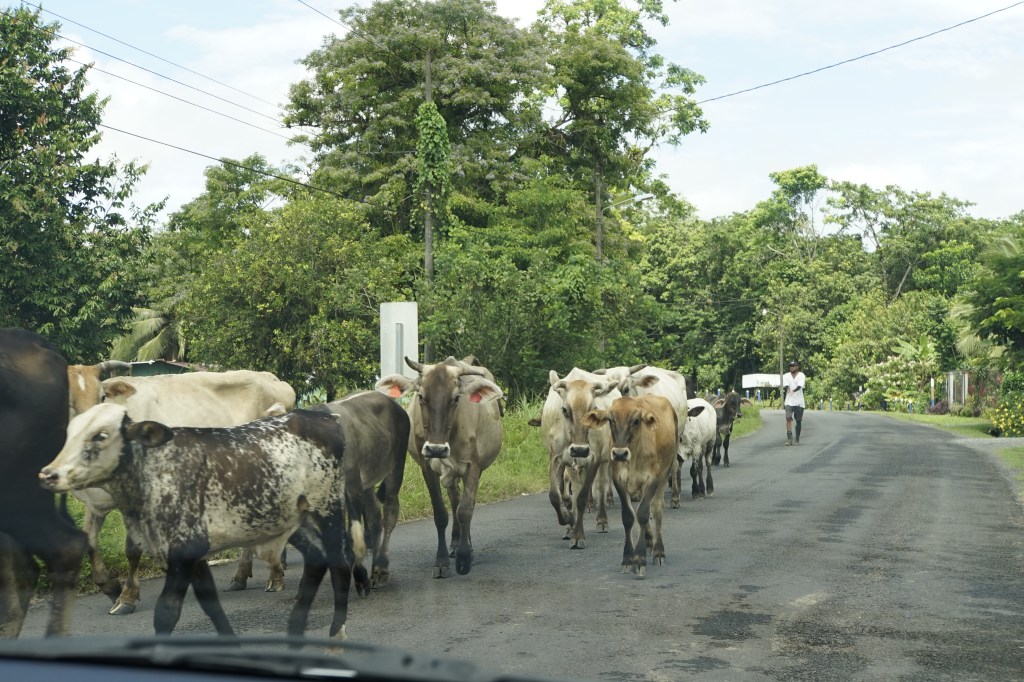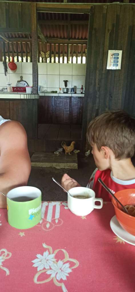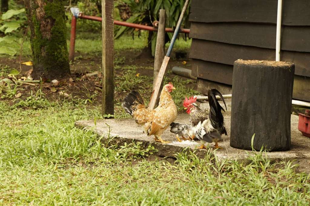 Wie zuvor beschrieben: unsere Nacht war noch vor 5 Uhr beendet und der Tag begann mit einem warmen Bad im karibischen Meer. Wir fangen an, uns zu aklimatisieren und versuchen die Häuslichkeiten so zu nehmen, wie sie eben sind. Es ist teilweise so absurd. Du sitzt am Tisch und plötzlich laufen hinter dir Hühner mit Küken ins Haus und drehen ihre Runden.