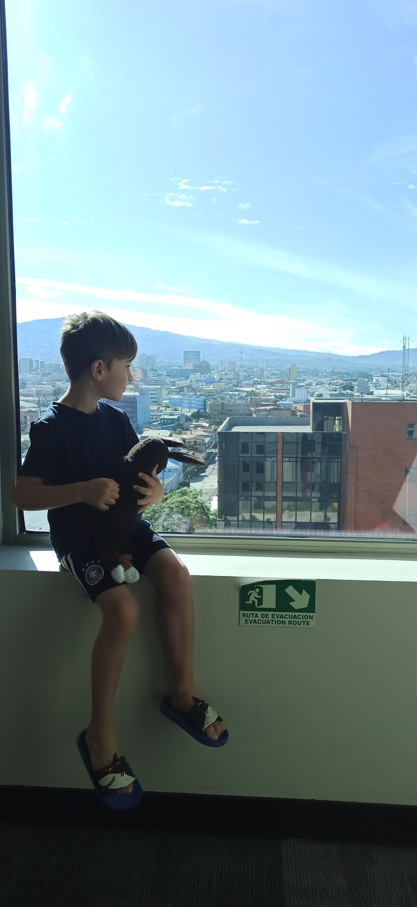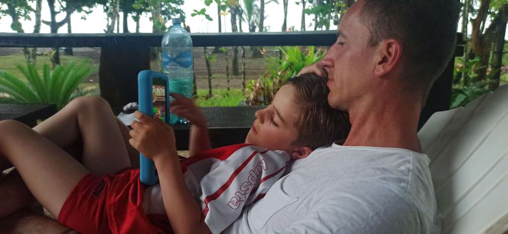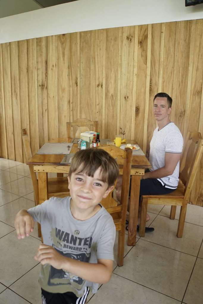 Nach etwa 11h Flug, 1h Schlaf, und ca. 20h Wachzeit landen wir um 17 Uhr Ortszeit in San josé. Der Plan: wir nehmen uns ein Uber für 6.000 colones (ca. 8€) zum 25 Minuten entfernten Hotel und schlafen so richtig aus. Die Realität: wir kommen im strömenden Regen aus dem Gebäude und werden von Taxifahrern überrannt. Von jeder Seite einer. Als ich nach dem Preis frage, hieß es Taximeter und ca. 20.000 colones (ca.30€). Ich zeige ihm mein Uber Angebot und er lacht mich aus. Seine Kollegen auch. Es ist stockfinster und in dem Regen woanders hin laufen keine Option – nicht in unserem Zustand. Okay ihr Nervbolzen, ihr habt gewinnen – für heute. Ben überlebt keine 5 Minuten im Auto und schläft an meiner Schulter ein. Der neunmal kluge Fahrer nutzt kein Navi, weil er ja (na klaaar) weiß wo das Hotel ist. Dann fährt er im Kreis. Einmal und Hotel und ein dezenter Hinweis von mir, dass er vorbei gefahren ist, lässt ihn dann doch das Navi anschalten. Da es hier viele Einbahnstraßen gibt, zeigt das Navi nun wieder 12 Minuten an. Ich sage ihm, er soll mich einfach rauslassen, wir laufen die 100m. Keine Option, er dreht um und dingelt umher. Bei 15.000 colones beschließe ich, mehr bekommt er nicht von mir. Als er uns am Hotel rausgelassen hat und ich ihm gesagt habe, dass das nicht in Ordnung war und er von mir das Geld bekommt, was auf dem Taximeter beim Vorbeifahren Stand, fing er zu diskutieren an. Doch das endete ganz schnell, als das Personal zum Empfang raus gekommen ist. Bäm.