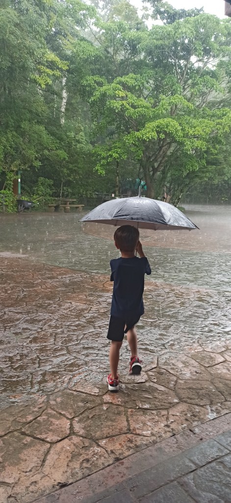Der Regenwald macht seinem Namen wieder alle Ehre. ALLES hat getropft…die Schuhe waren wie kleine swimming pools … na zum Glück habe ich mein Regencape eingepackt. Letztlich saß Ben nackig im Auto…ein Bild für die Götter….haha. Ein sehr lustiges Erlebnis. Ihr werdet mir verzeihen, dass das Fotografieren während unseres Regenabenteuers nicht möglich war… ;-)