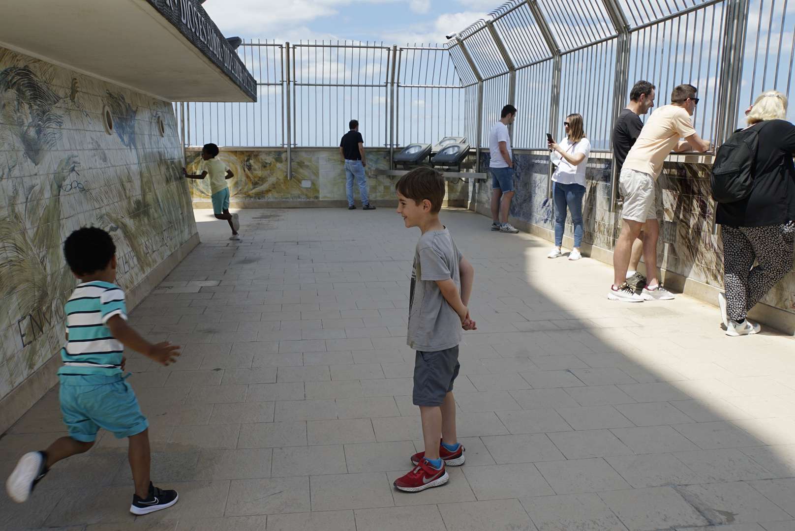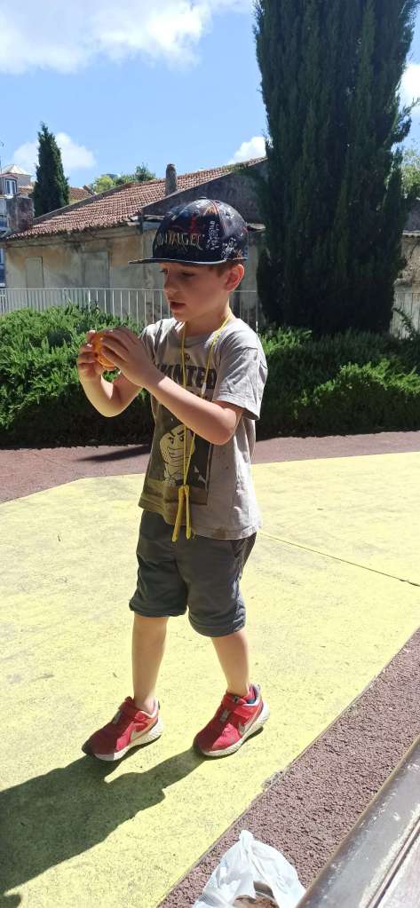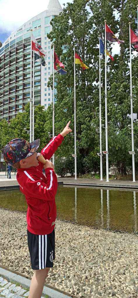 Weiteres Highlight: der Spielplatz beim Castelo Sao Jorge. Nicht nur, dass man von dort oben einen phänomenalen Ausblick hatte. Es wachsen dort oben Aprikosen-und Orangenbäume. Naja, und da so ziemlich jeder Zweite versucht hat, die Bäume zu schütteln und etwas von den Früchten zu ernten…wurden wir gut versorgt…haha. Außerdem hat Ben dann noch Bekanntschaft mit einer 8-jährigen Portugiesin geschlossen. Er hat sich anfangs tatsächlich etwas angestellt und wusste nicht wie er sie ansprechen sollte. Dabei hatte sie ihn sogar zuvor schon auf Deutsch gefragt, was der denn da macht. Aber gut, die Mama hat eben nachgeholfen. Letztendlich ist Ben auf den Orangenbäum geklettert, hatte ihre volle Aufmerksamkeit und dann haben sie sich sicher gute 20 Minuten darüber unterhalten, dass sie auf eine Deutsche Schule geht und welche Bäume sich hier besonders gut beklettern lassen. Sie war ein richtiger Sonnenschein.