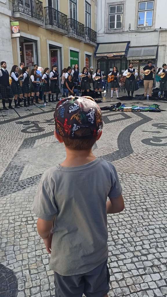 Auf dem Weg zurück zu Bahn gab es dann noch eine Menge an Musikern und Folklore zu sehen. Das fand Ben natürlich richtig cool. All die geschmückten Gassen und Straßenmusiker sind schon die Vorboten des riesigen jährlichen Festes de Santo António.