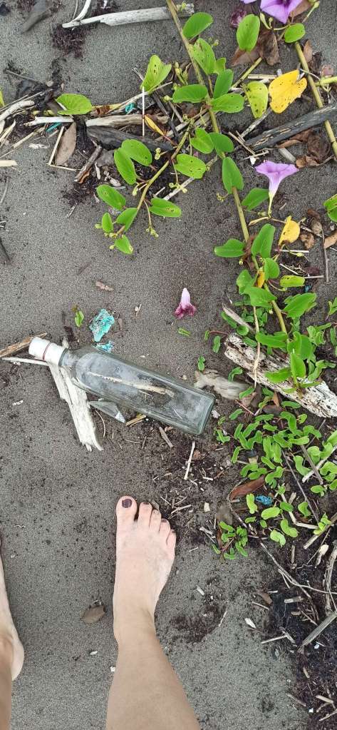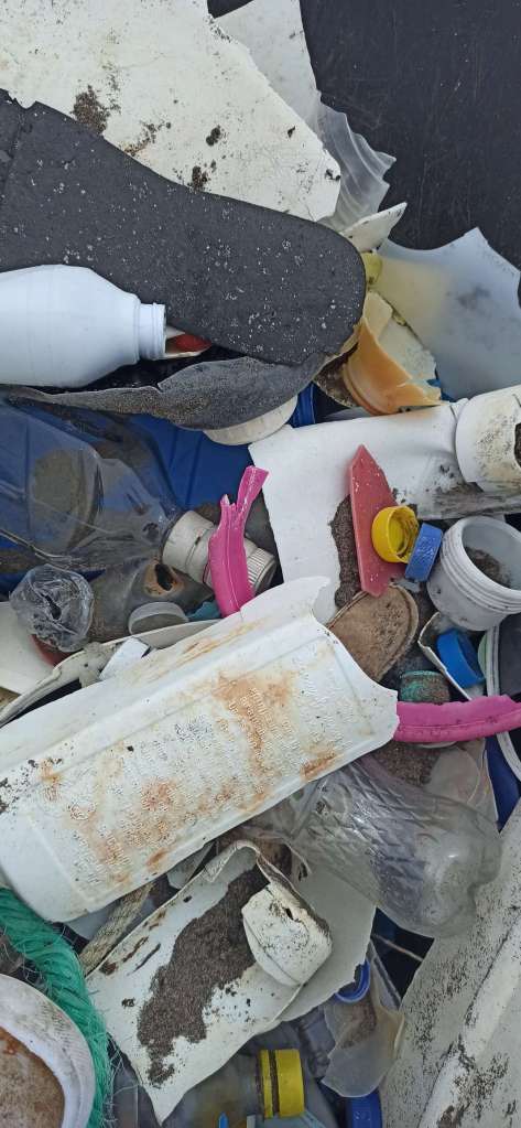 Als wir morgens am Strand standen, war mein verträumtes, naives Ich erschrocken darüber, dass „mein sauberer“ Abschnitt mit neuem Müll bestückt war. Es ist ein Trauerspiel. Ich konnte einfach nicht anders und habe mich wieder ans Sammeln gemacht und der Müllberg wuchs. Einfach verrückt. Ein Tropfen auf den heißen Stein, aber vielleicht auch einfach 50m mehr für die Eiablage der Meeresschildkröten.