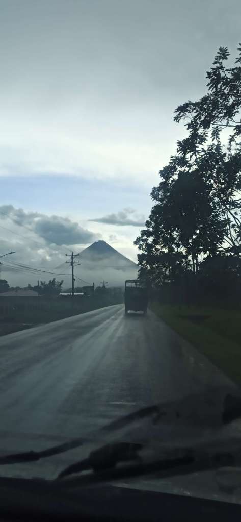 Es war 10.30 Uhr und wir haben 170 km (ca. 3h reine Fahrzeit vor uns). Das heutige Ziel: La Fortuna, ganz nahe des Vulkans „Arenal“. Auf dem Weg dorthin haben wir nahezu keine Stopps gemacht, außer für unser Mittagessen. Dieses war aber auch erstaunlich gut, obwohl direkt am Highway gelegen und wir da schon von vorne herein nicht allzu viel erwarten. Ich habe ein neues Getränk für mich entdeckt: Cas. Diese kleine tropische Frucht ist wirklich lecker. Die Leute hier trinken primär entweder tap water (also Leitungswasser, welches in Costa Rica fast überall hervorragende Trinkqualität aufweist) oder aber bibidas frescas (Saftschorlen mit einheimischen Früchten). Cas ist eines davon und ich mag es sehr.