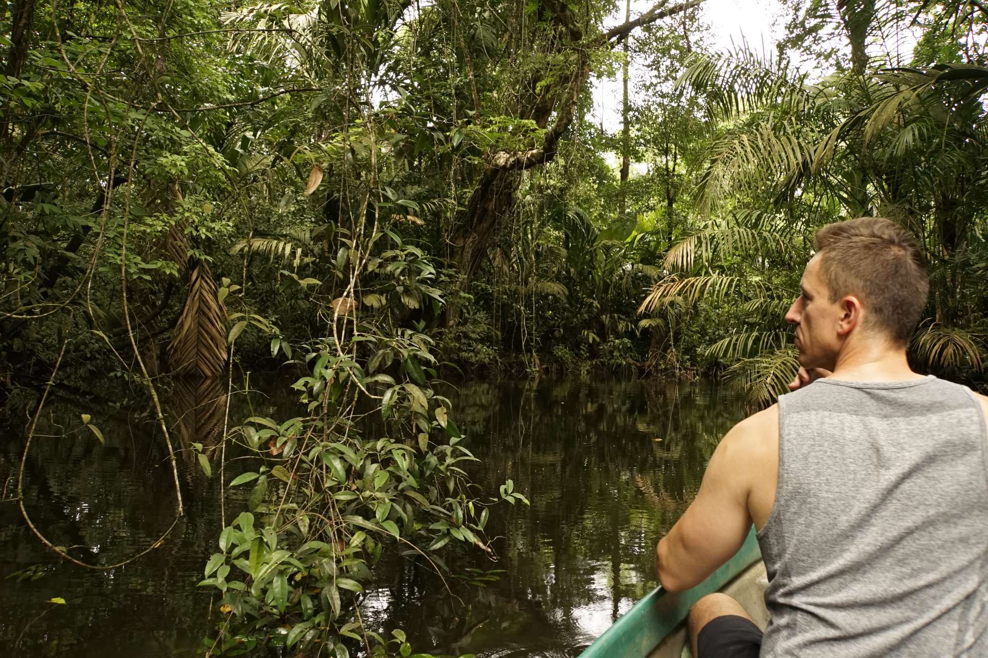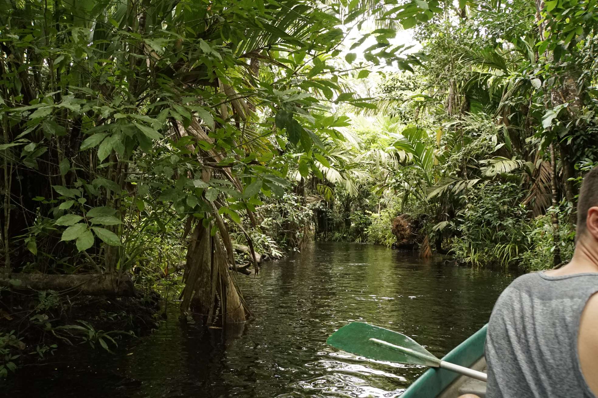 Es war ein Traum. Wir haben Affen gesehen, Leguane, diverse Echsen, diverse Vögel wie einen Tukan, Reiher, … Pagagaien. Die einzigen Geräusche waren die Paddel, Vögel und Affen. Leider keinen Jaguar, obwohl David uns berichtet hat, dass er schon oft einen Jaguar gesichtet hat. Er zeigte uns auch einen der Bäume, auf welchem er ihn schlafen sah.