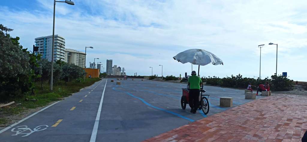 Die Strände in Cartagena sind allesamt nicht schön. Wir haben 4 Strände bei Bocagrande, 1 Strand in Crespo und zwei Strände zwischen der walled city und Crespo inspiziert. Die Strände in Bocagrande sind eine Katastrophe. Verkäufer, Dreck, unheimlich viel Seegras, Boote und Jetski….und Menschenmassen ohne Ende. Nach der walled city, etwa auf Höhe des Ibis Hotels, sind die Strände dann leerer bis leer. Kaum bis keine Verkäufer und nur vereinzelt trifft man Einheimische. Wenn man baden gehen möchte, dann hier bis hin nach Crespo. Alle Strände sind grau, das Wasser mehr oder weniger klar. Das erklärt, warum die meisten Einheimischen, kolumbianische Touristen & co. gerne/ regelmäßig nach Barú zum Playa Blanca fahren. Sie sind Verkäufe gewohnt, das Wasser ist türkis und der Sand weiß. Für jede also ein großer Mehrwert. Schade, dass sie ihr eigenes Paradies allerdings so zerstören. Hauptsache, man kann heute Geld damit machen. Das ist alles, was zählt. En