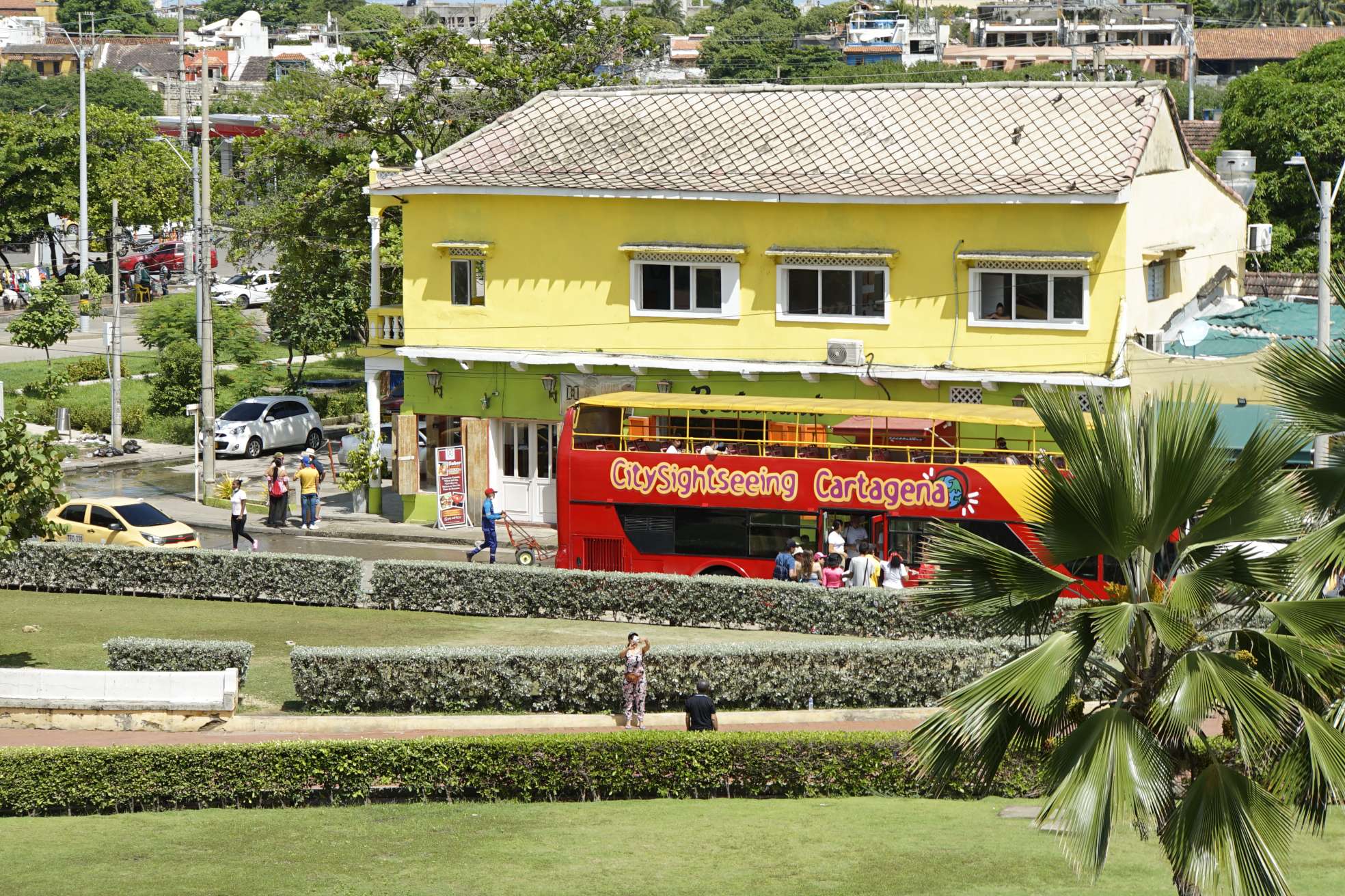 Auto mieten kommt hier nicht in Frage- zumindest nicht für mich. Der Verkehr ist aggressiv und die Parksituation nicht immer safe. Insbesondere, wenn man keine überwachte Garage findet. Mietwagen werden gerne aufgebrochen, oder gestohlen. Wenn man Überlandfahrten (z.B. in Richtung Barranquilla, Santa Marta, etc.) plant, kann man das mit privaten Transfers buchen. Oft sogar bei GetYourGuide oder inDriver. Außerdem, ist das Taxifahren super super günstig. Vorausgesetzt, man lässt sich nicht abzocken. Die Empfehlung unserer Vermieterin war inDriver zu nutzen. Das ist ähnlich wie Uber und sehr gängig. Es gibt keine Taximeter, jeder Preis ist reine Verhandlungssache. Da ich keine Lust auf Diskussionen mit Fahrern hatte, war mir inDriver ein Segen. Man gibt dort ebenfalls Start & Zielort ein und schlägt einen Preis vor. Entweder ein Fahrer nimmt deine Anfrage an, oder aber der/die Fahrer machen ein Gegenangebot. Ablehnen kann man immer. Innerhalb von Cartagena kommt man so ziemlich überall für 10.000 – 12.000 COP hin. Das sind dann etwa 2,50-3 Euro. Wir haben auch ein paar Mal ein offizielles gelbes Taxi genommen, was glatt und easy lief. Doch einmal wurden wir so richtig verarscht, wo ich mich auch tierisch aufgeregt habe. Am Hotel standen die weißen Turismo Taxis und ich fragte, ob 9.000 COP nach Bocagrande okay sind und es kam ein Ja. Dort angekommen, wollte er dann 15.000 COP und zeigte mir eine dämliche Preisliste. Also, nutzt inDriver! Keine Diskussionen und keine Chance, reingelegt zu werden.