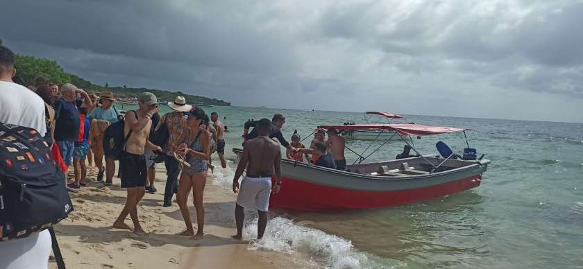 Wie ich es immer mache, habe ich vorab bei TripAdvisor und GetYourGuide nach potenziellen Ausflügen geschaut. Ben und ich hatten uns ein Wasser-/Strandausflug und den Schlammvulkan ausgesucht. Ganz begehrt: Playa Blanca. Zugegeben, das Wasser ist wie man es sich in der Karibik eben vorstellt. Wären da nicht die riesigen Müllhaufen in der Nahe, der Benzingestank der vorbeifahrenden Boote und ein Haufen nerviger Verkäufer. Mir ist klar: Dort will ich auf gar keinen Fall hin. Tanita, unsere Vermieterin, hat eine Cousine, welche eine Reiseagentur betreibt. Also suchen wir über sie nach einem Strandausflug. Wir stoßen auf Playa Tranquila , übersetzt „ruhiger Strand“. Der ist auch auf Barú (Halbinsel vor Cartagena), aber sieht auf den Fotos viel ruhiger und idyllischer aus. Zwei Tage später wurden wir vom Minibus /Van um 6.30 abgeholt. Wir waren voller Vorfreude, wenn auch müde und obwohl ich mich gar nicht fit fühlte. Aber hey, am Strand können wir ja den ganzen Tag entspannen. ODER?
