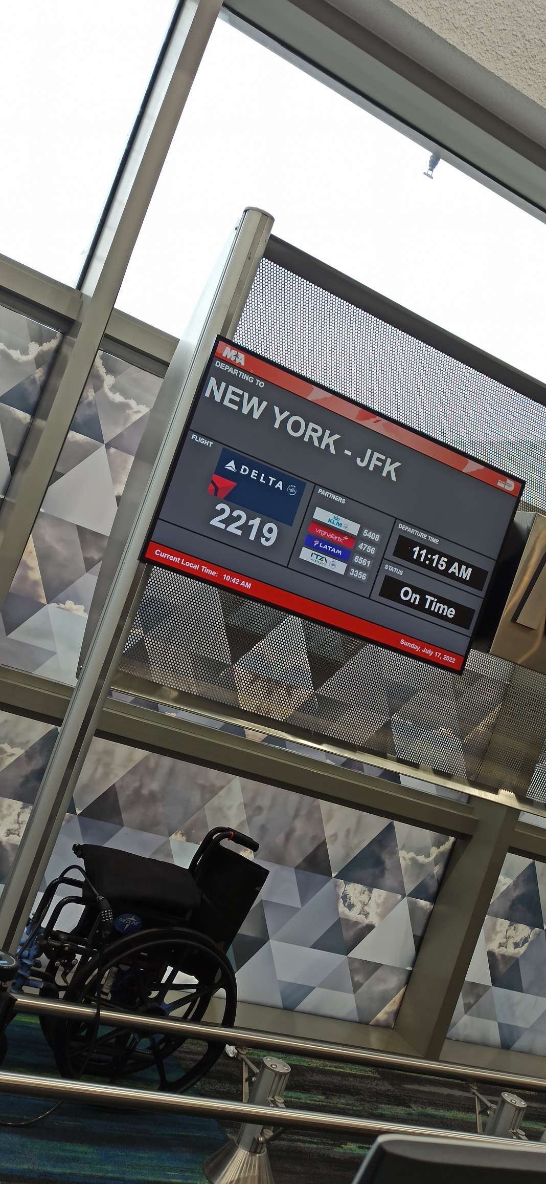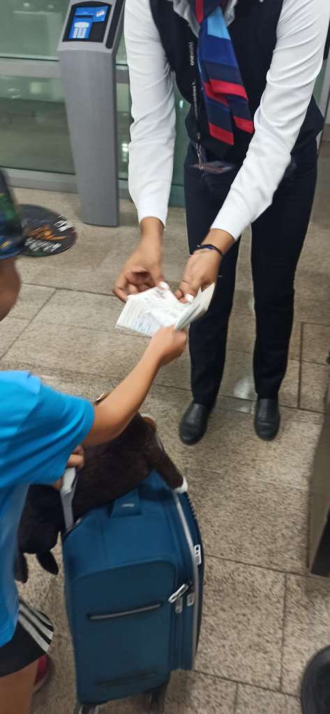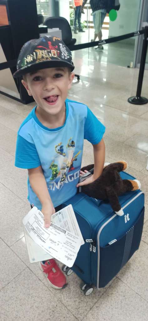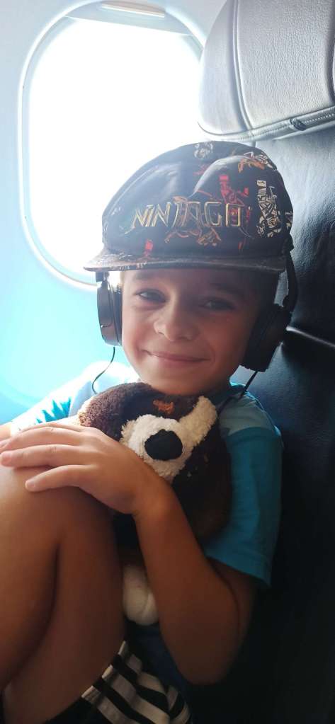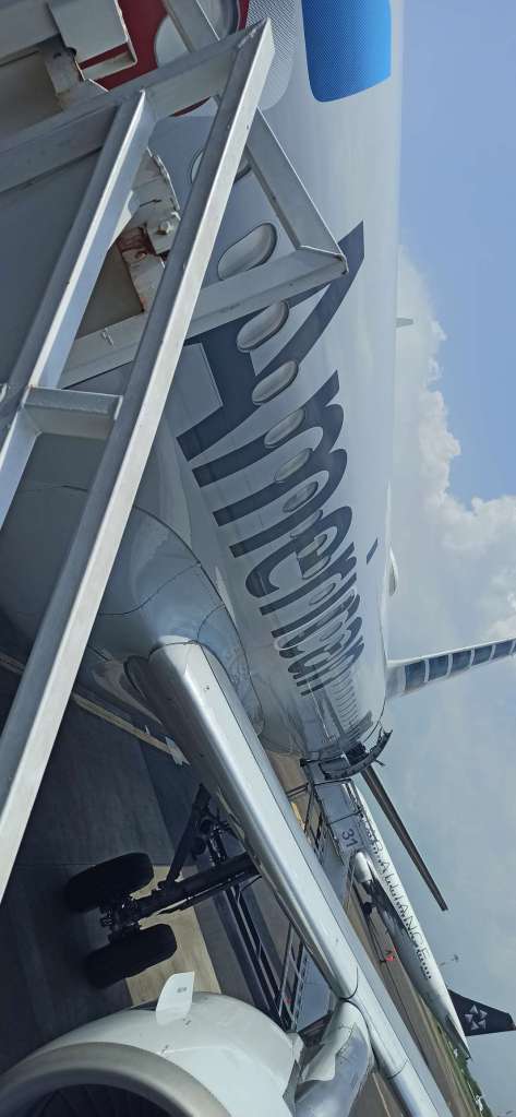 Die Nacht war sehr bescheiden. Das mit der Luft ist nicht gut. Gar nicht gut. Auf dem Weg zum Flughafen wird es schlimmer und als wir einsteigen, hoffe ich, dass es irgendwie vergeht und versuche mich bei Laune zu halten.