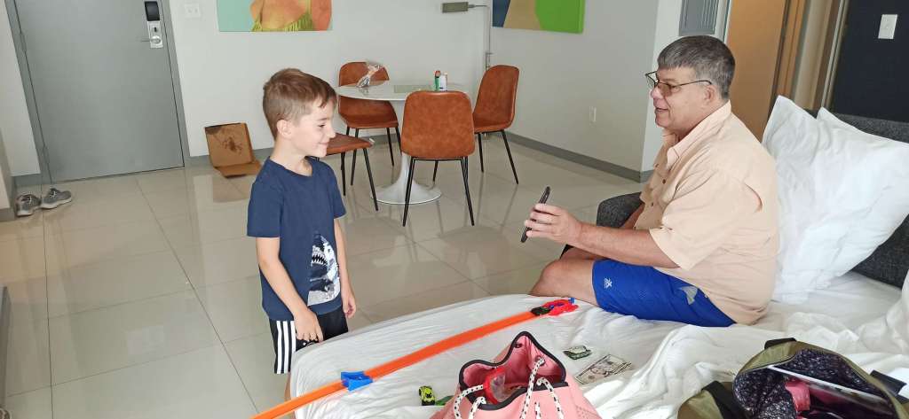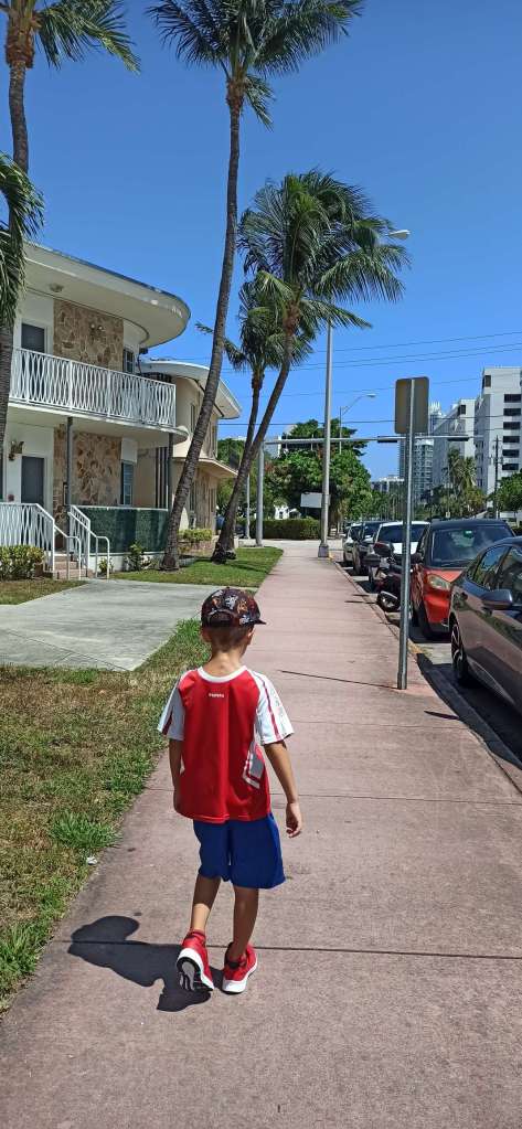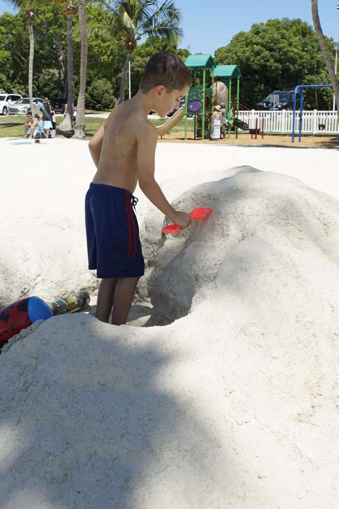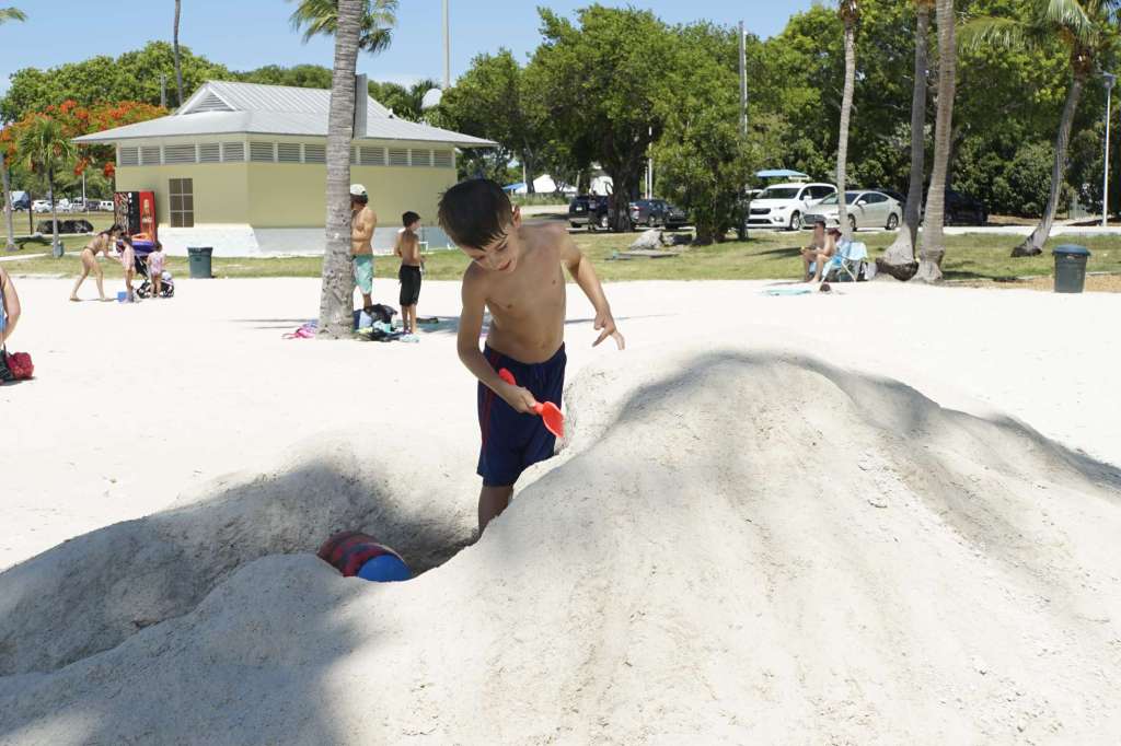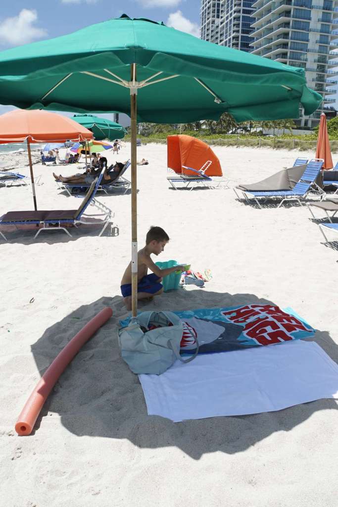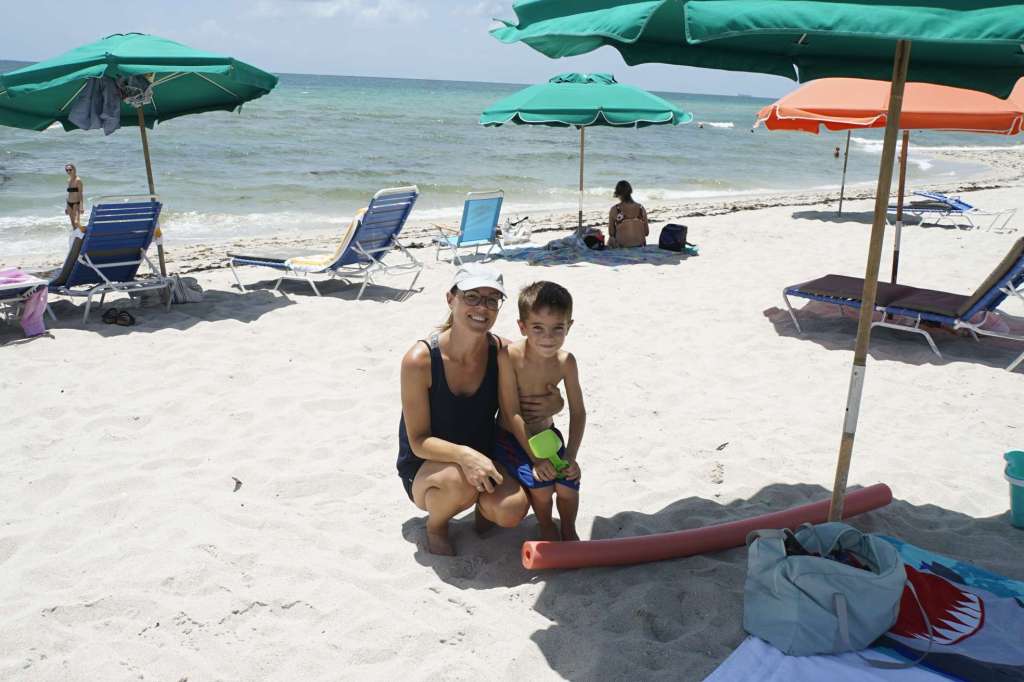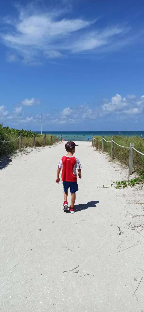 Glücklicherweise ist Miami Beach nur 6 Minuten zu Fuß entfernt. Wir packen heute also unsere Strandsachen zusammen, mieten uns Liegen und Schirm und hängen am Strand ab. Gebuddelt wird nur seniorengerecht …ja leider keine riesen Vulkane und Löcher mehr, jetzt gibt’s vorerst nur noch Sandkuchen. Immerhin müssen wir ja Kräfte einsparen. Wir genießen das lauwarme Wasser und ich habe Ben scharf im Blick für jegliche Auffälligkeiten. Wenn ich nun eins weiß: Ben ist ein guter Schauspieler, und offenbar kann er sehr gut „Unwohlsein“ tarnen. Wer möchte schon was vom Leben verpassen?