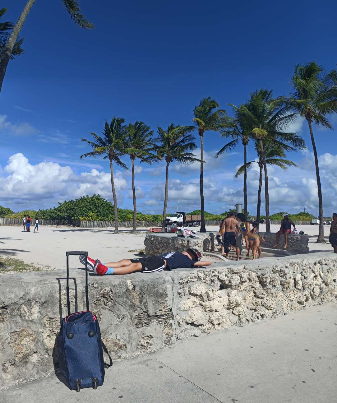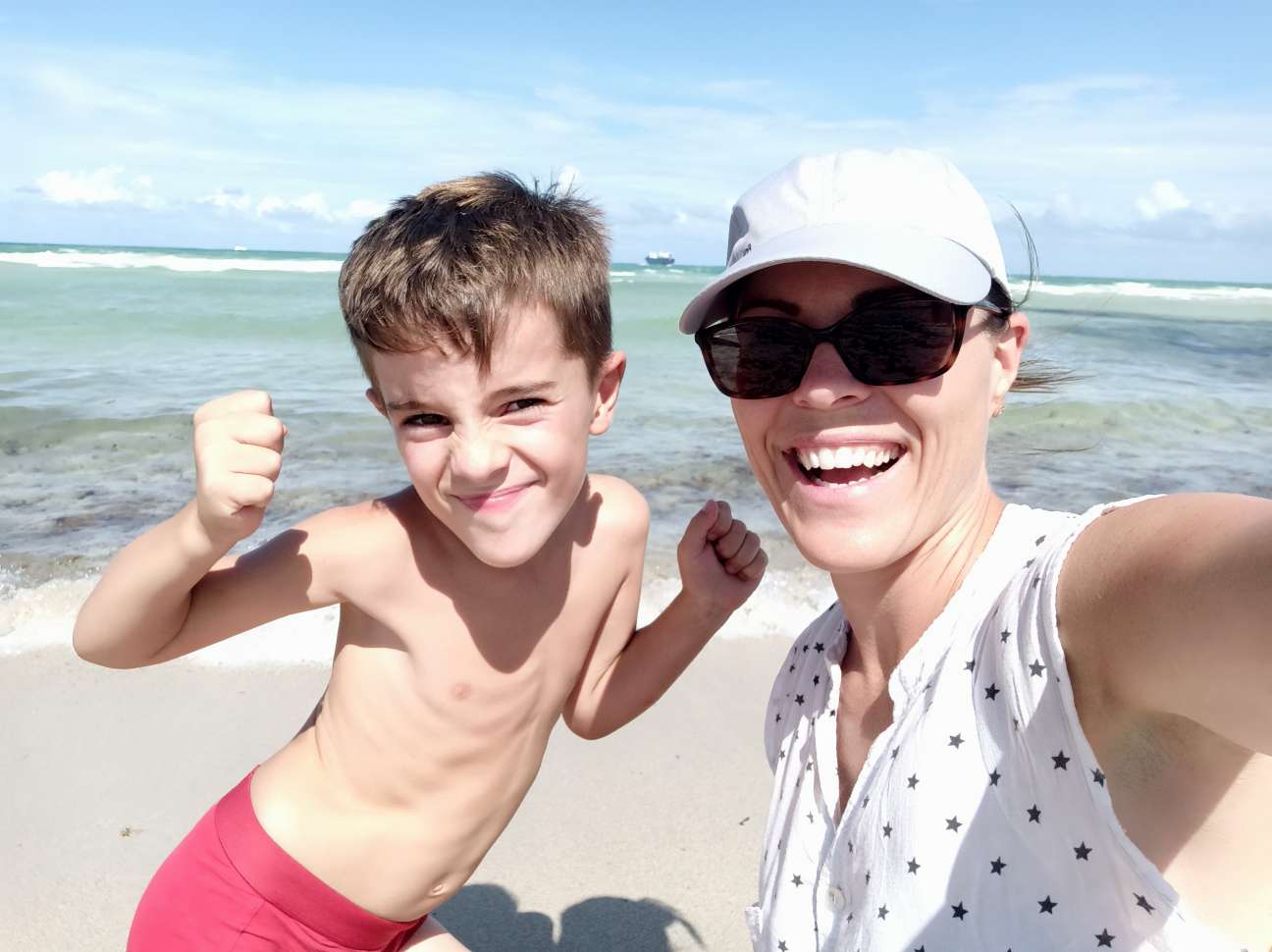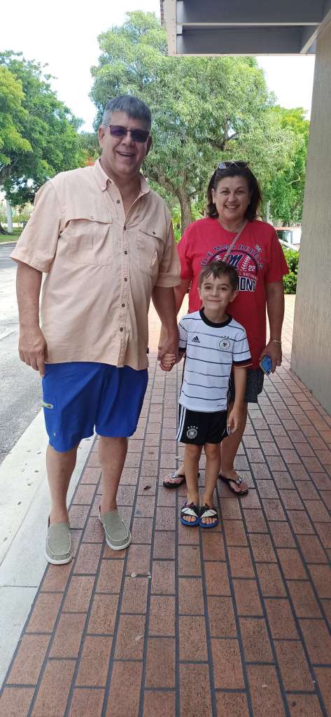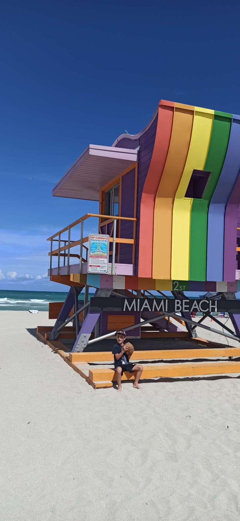 Glücklicherweise ist Miami Beach nur 6 Minuten zu Fuß entfernt. Wir packen heute also unsere Strandsachen zusammen, mieten uns Liegen und Schirm und hängen am Strand ab. Gebuddelt wird nur seniorengerecht …ja leider keine riesen Vulkane und Löcher mehr, jetzt gibt’s vorerst nur noch Sandkuchen. Immerhin müssen wir ja Kräfte einsparen. Wir genießen das lauwarme Wasser und ich habe Ben scharf im Blick für jegliche Auffälligkeiten. Wenn ich nun eins weiß: Ben ist ein guter Schauspieler, und offenbar kann er sehr gut „Unwohlsein“ tarnen. Wer möchte schon was vom Leben verpassen?