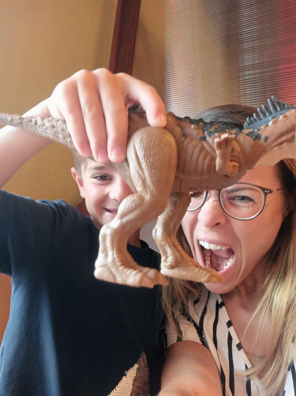 Am darauffolgenden Tag war nicht allzu viel los. Ein kleiner Walmart Ausflug (Ben hat wieder zugeschlagen) , Packen, vom Strand verabschieden und Abendessen bei Denny’s. Sein neuer Dinosaurier hatte selbstverständlich auch Hunger und über Begleiter. Nur Blödsinn hatten wir im Kopf. Bubba sagte, Denny’s wäre gut. Mein Fazit: Geht so. Ben war nicht allzu happy drüber und ich fand es auch nicht doll. Ich freue mich schon wieder auf unser Essen Zuhause…yeeeha.