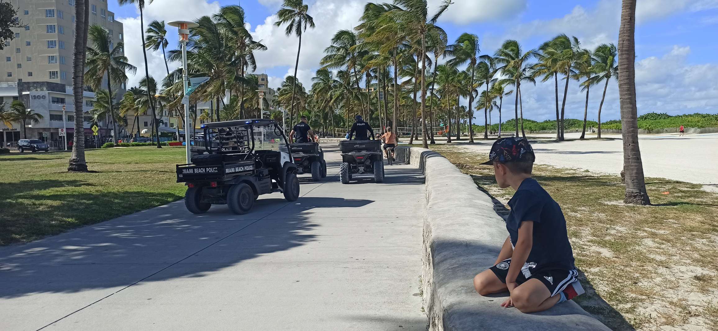 Als wir in South Beach ankamen, waren wir von abgefahrenen Trikes, Skatern, Lamborghinis und viel nackter Haut umgeben. Hier ist ja was los. Hier zu parken war sinnlos. Davon abgesehen, beklagt sich Ben andauernd, dass ihm zu heiß ist und dann doch wieder kalt. Wir fahren also eine Runde und machen kehrt.