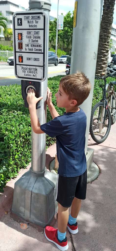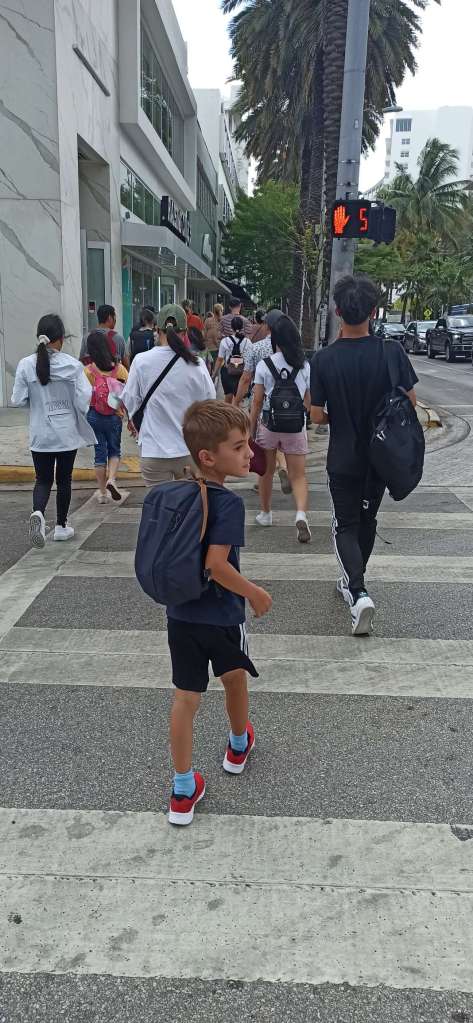 Also gut, Ben geht’s nach wie vor gut. Er isst auch wieder mehr und daher fahren wir heute mit dem Miami Trolley 20 Minuten, um South Beach zu sehen. Der berühmteste Strand in Florida. Ja okay, er ist schön, aber meiner Meinung nach vieeeeeel zu voll. Wir haben keine Badesachen dabei. Egal, dann eben in Unterwäsche! Ben hat den Spaß seines Lebens und schreit unentwegt „ich bin so glücklich. yeah. Das ist so cool“. Na das hört sich doch super an. Das Drumherum von South Beach ist auch einen Stadtbummel wert. Außerdem habe ich Ben die ganze Reise über vertröstet, wenn er Spielsachen kaufen wollte. Gelockt habe ich ihn mit der USA, denn hier kann man doch so super shoppen gehen… Also stehen wir hier u.a. vor ROSS und Ben verschwindet in den Regalen. Keine Ahnung wie ich früher so gerne shoppen gehen konnte. Mittlerweile nervt mich das eher. Er wird jedenfalls fündig (klar wird er das…meine kleine Shoppingueen).