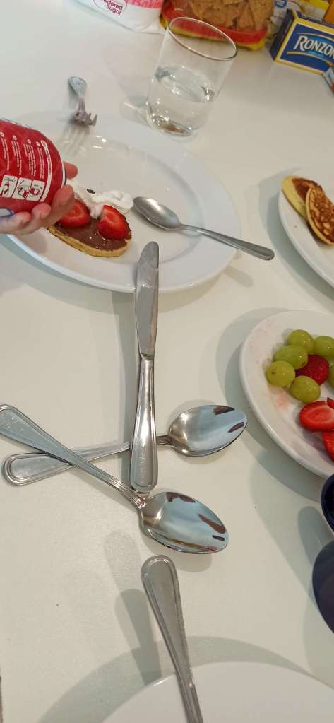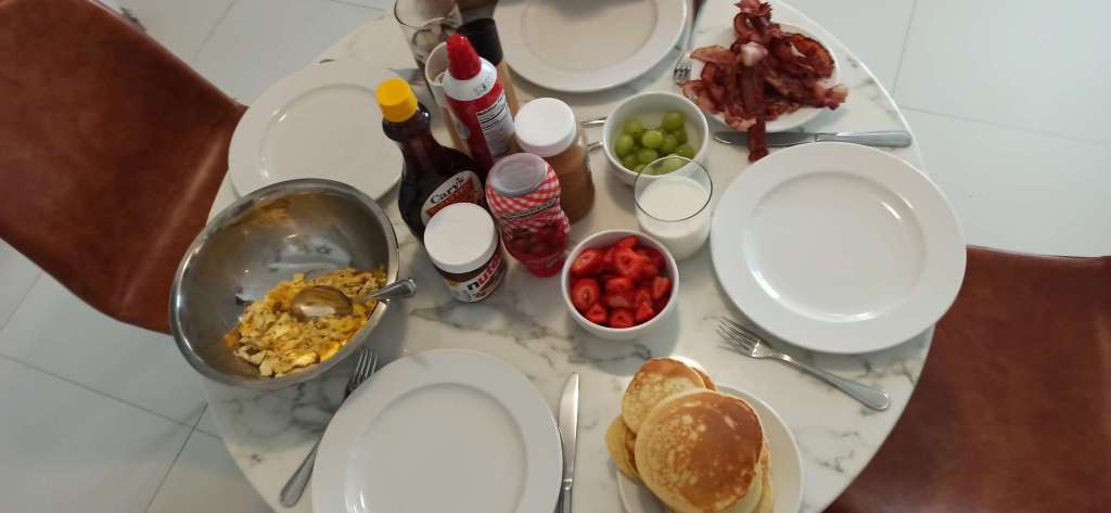 Was man bei der Hütte mit buchen kann (und definitiv auch sollte) ist die Verpflegung „full board“. Catharin, im Prinzip die Nachhbarin, hat uns täglich 3x bekocht. Für Ben haben wir Brot, Marmelade, Milch sowie Müsli mitgebracht – tatsächlich gestaltet sich sein Essverhalten während der Reise ziemlich schwierig. Catharin ist ein Herzstück und hat doch tatsächlich versucht für Ben eine „Extrawurst“ zu kochen. Von Pancakes bis hin zu handgemachten Pommes und Pancakes hat sie es probiert. Leider nur mit halben Erfolg. Wir wissen nicht, ob er aus Prinzip fand, „dass alles komisch“ oder „anders“ schmeckte, oder ob es tatsächlich so war. Whatever. Wir haben ihr gesagt, dass sie nicht extra für ihn kochen soll, denn am Ende schmeißen wir alles weg und das ist viel zu schade.