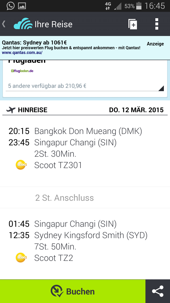 Berlin – Oslo – Bangkok (2 nights) – Ho-Chi-Minh (4 nights) – Phu Quoc (9 nights) – Hanoi (5 nights) – Singapore (2 nights) – Sydney.Price altogether: ~600€.